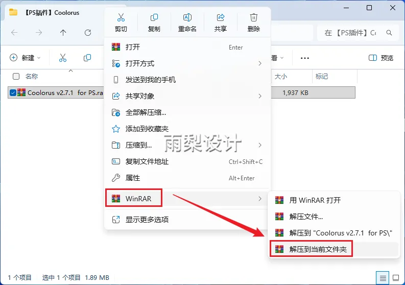 1.右键下载的插件压缩包,并【解压到当前文件夹】