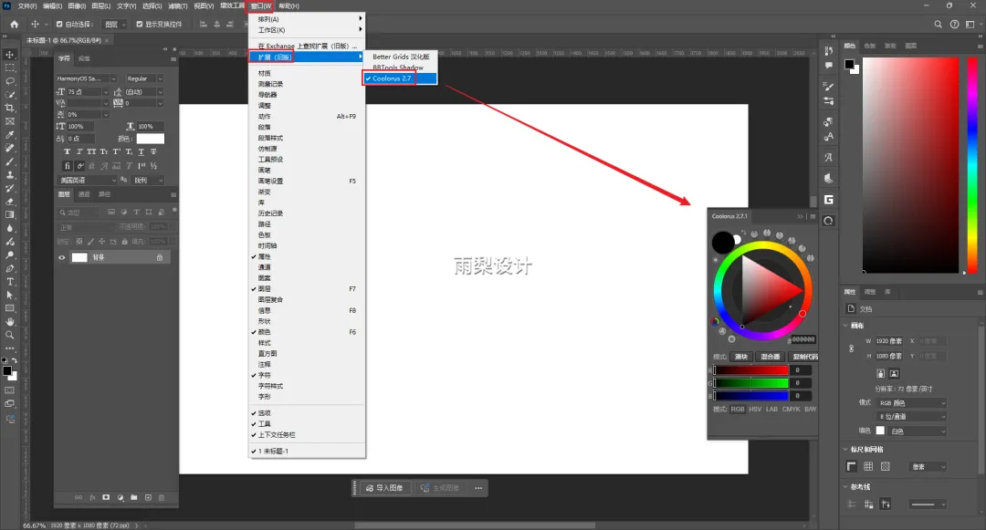 4.打开PS软件:点击【窗口】>【扩展】>【Coolorus 2.7】