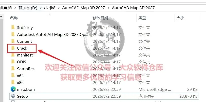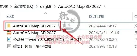 2.双击打开解压后的AutoCAD Map 3D 2027文件夹;