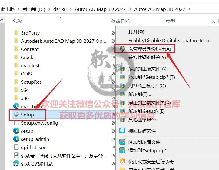 3.右键以管理员身份运行Setup程序;