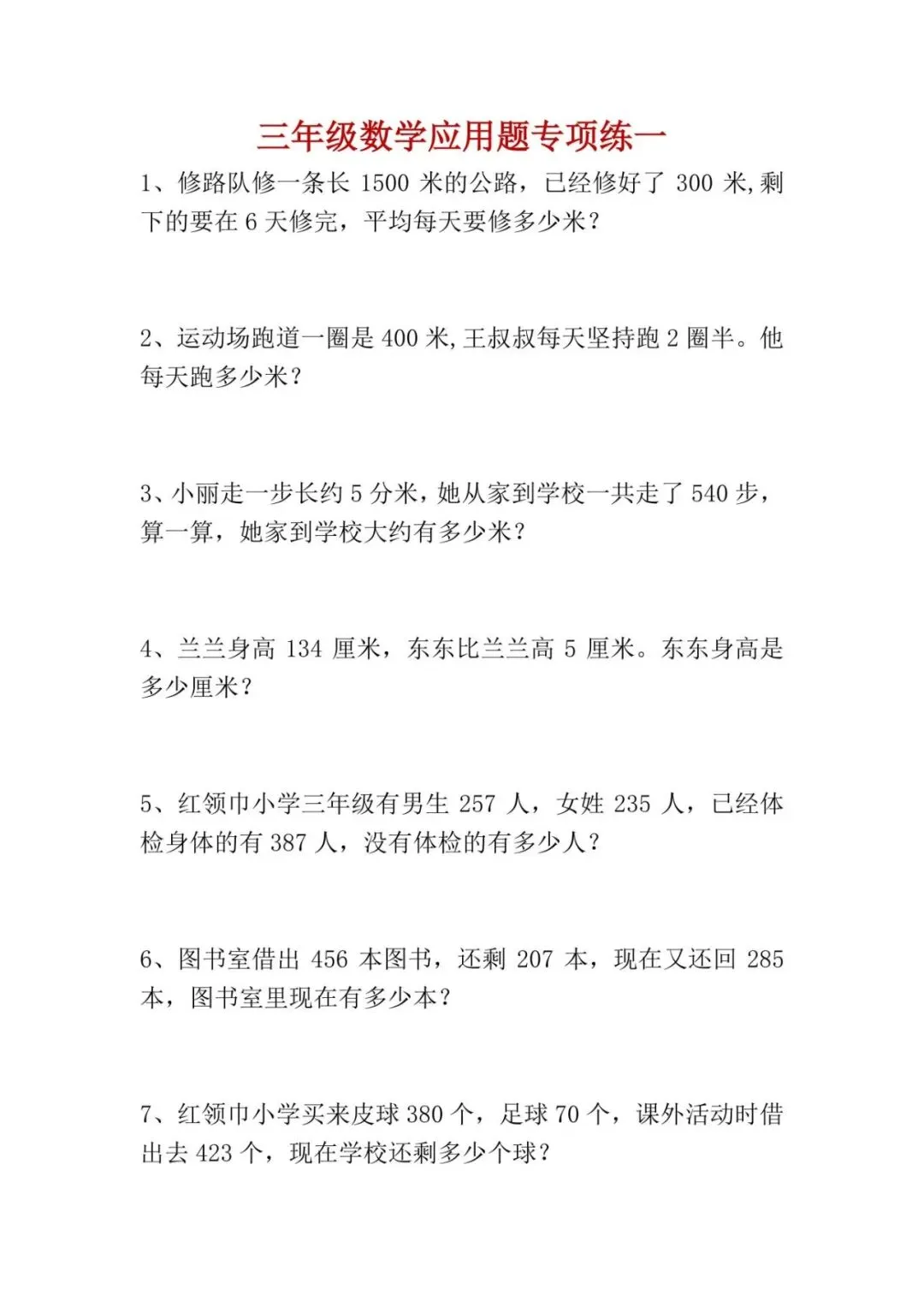 新版三年级下册数学《应用题专练》,需要的家长抓紧打印出来,给孩子练一练吧!