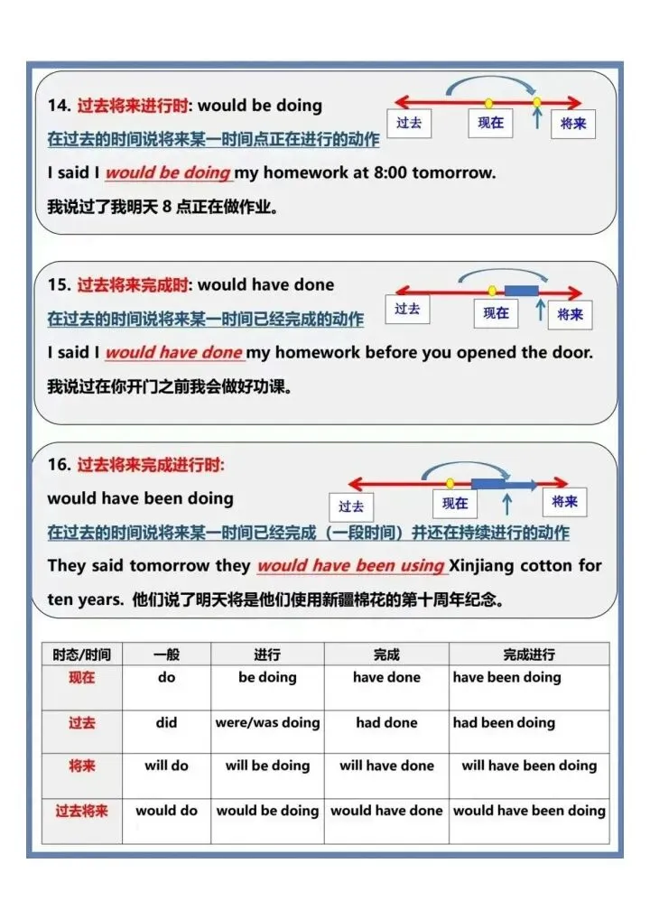 一眼看懂英语16大时态汇总(完整电子版可打印)
