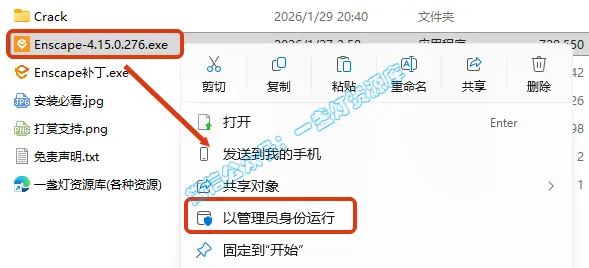 2.打开刚刚解压的文件夹,选中【Enscape-4.15.0.276】文件,右键选择【以管理员身份运行】