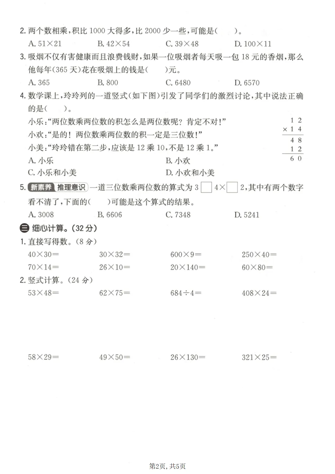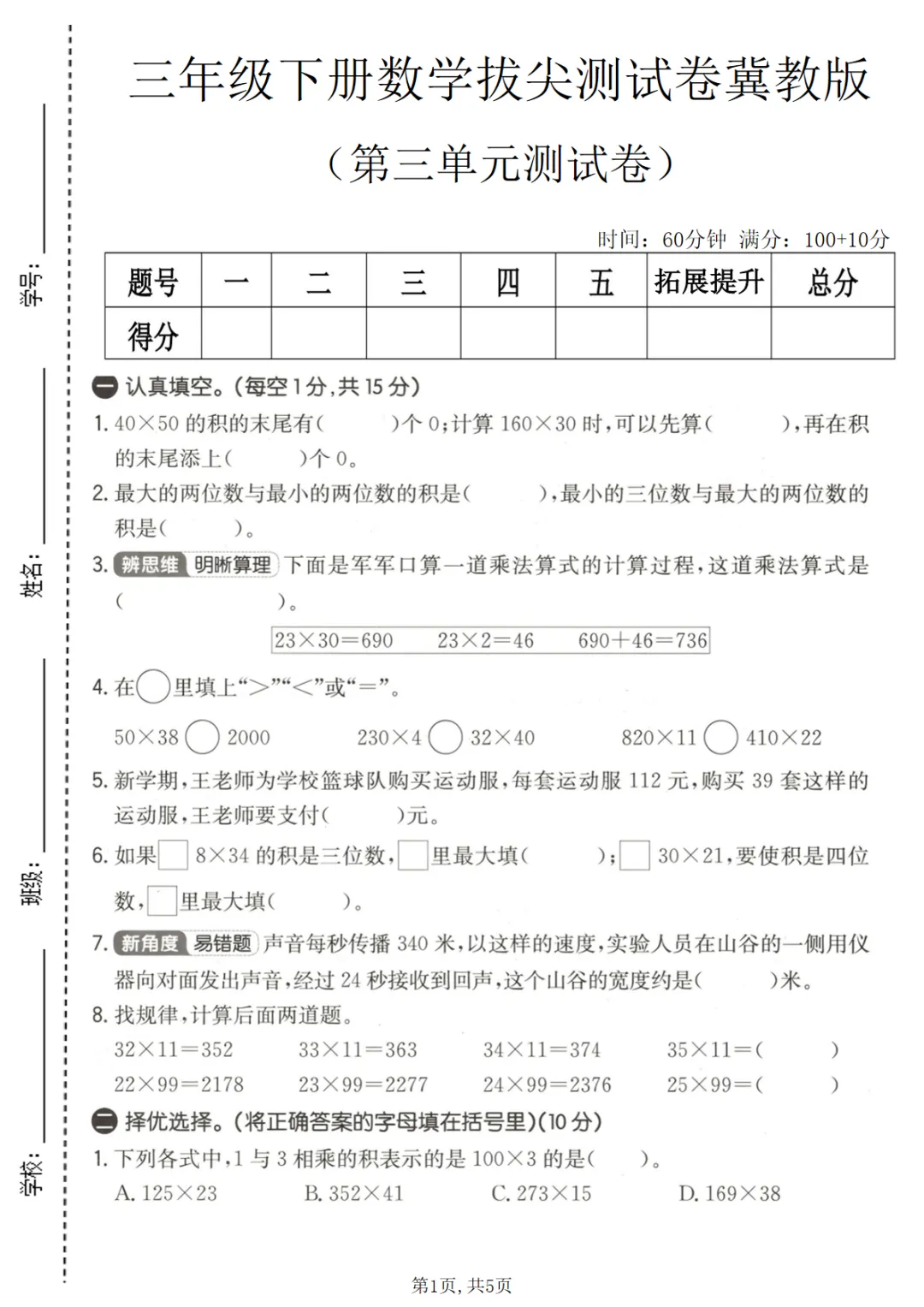 【免费下载】三年级(下)数学 第三单元拔尖测试卷《冀教版》,PDF电子版,共5页,先保存,以免资源失效