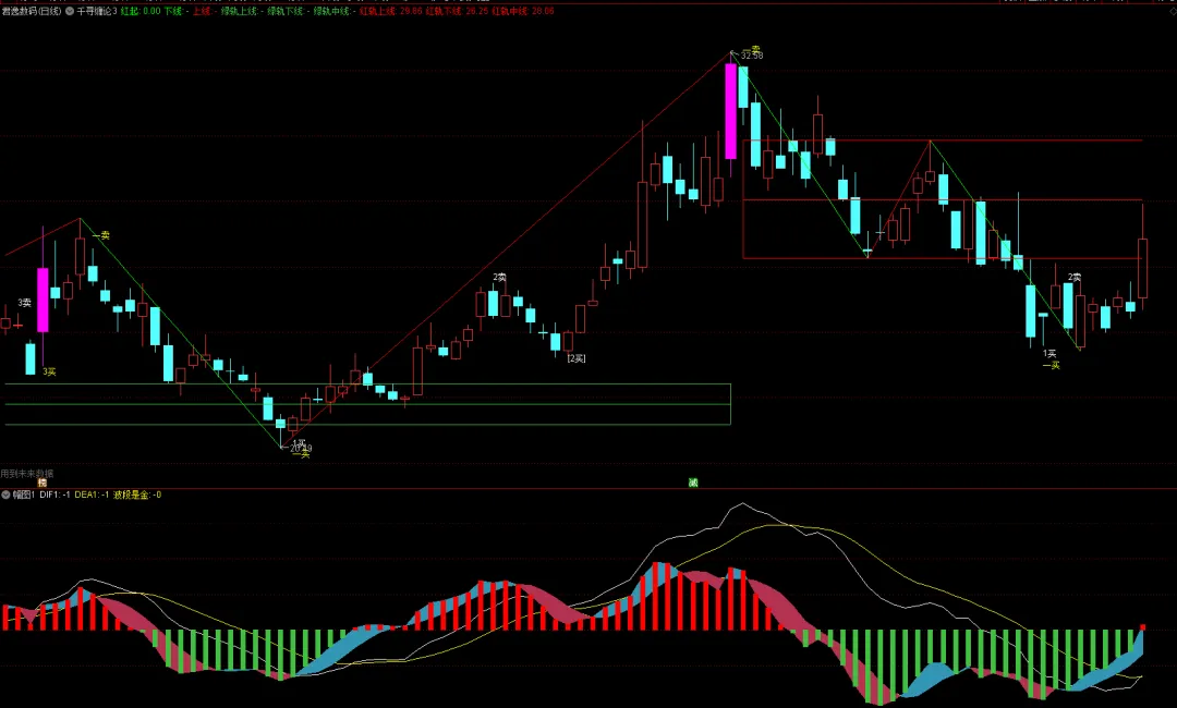 波段:=2*(DIF1-DEA1),COLORGREEN,COLORSTICK;