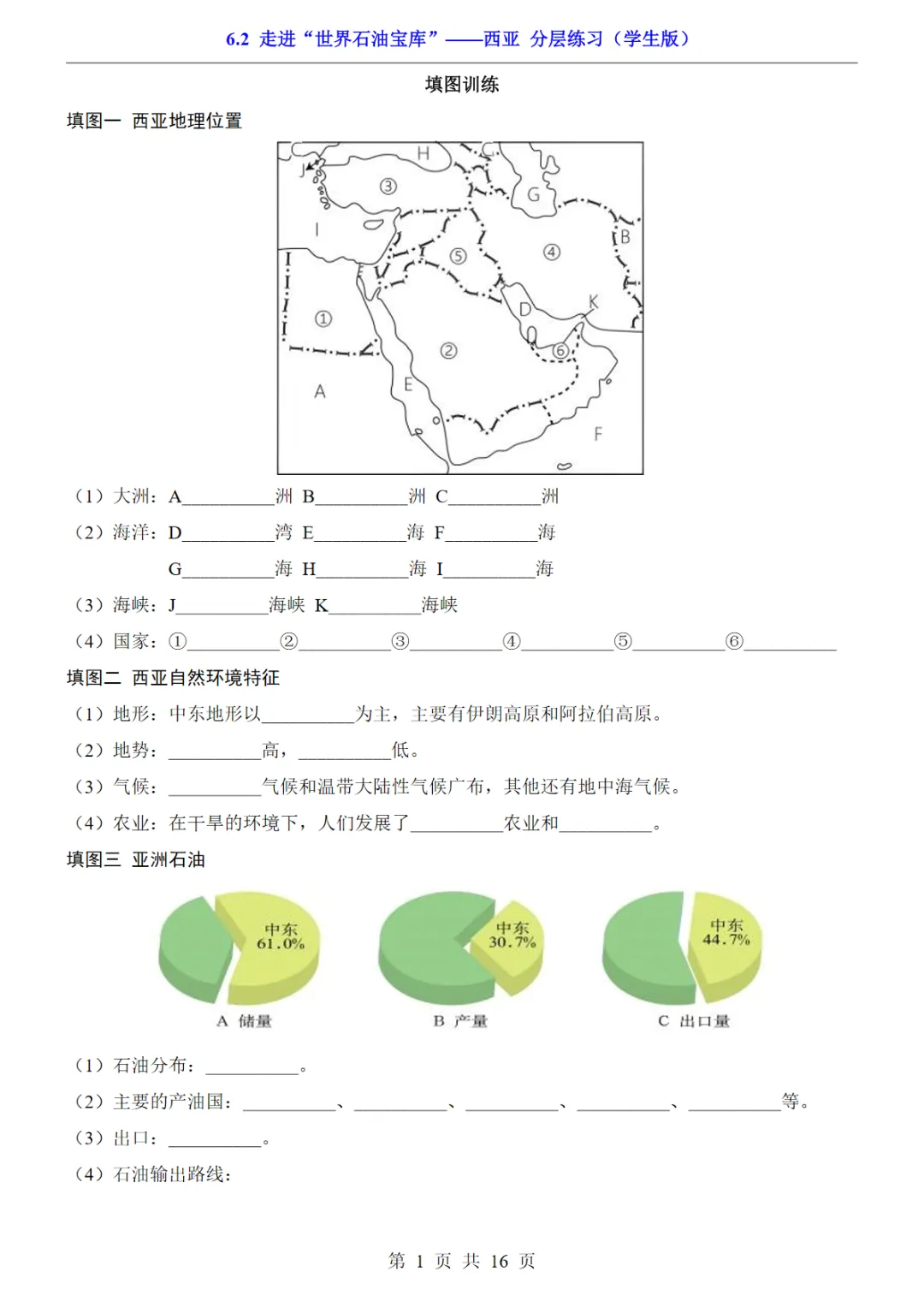 【免费下载】七年级(下)地理6.2走进“世界石油宝库”——西亚 分层练习(晋教版),PDF电子版,可打印