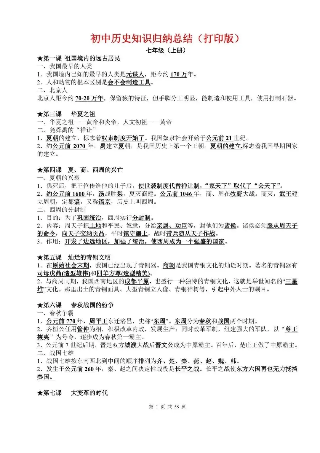 「初中历史」知识点归纳汇总(超详细)可下载打印