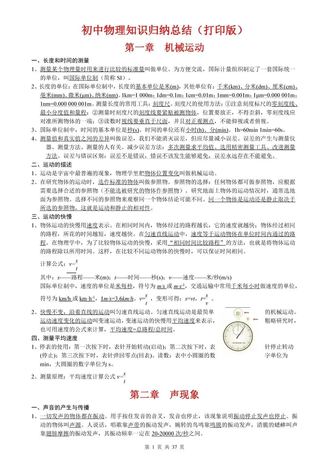 「初中物理」知识点归纳汇总,高清版可下载打印,超详细!