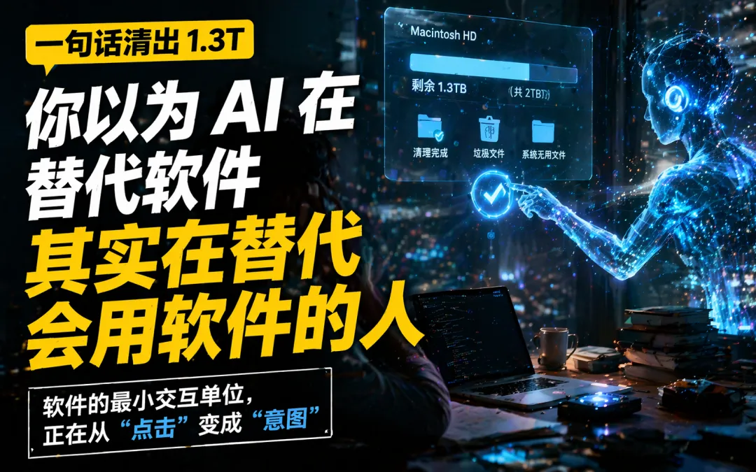 明天的软件,不会先变得更炫,而会先变得更像“人”很多人对未来软件的想象,是更酷的界面,更炫的交互,更强的功能页。但真正的变化,恰恰可能没那么花哨。它会先表现为一种很安静、但很致命的变化:你越来越不需要学会它。它越来越需要学会你。你不再背命令。你不再记路径。你不再理解系统内部那些荒谬的命名。你不再去当工具和业务之间的翻译器。你只需要说:我想要什么什么不能碰结果长什么样什么时间交付剩下的,它去做。这时候,软件就不再只是软件了。它会慢慢变成:新的基础设施新的劳动力新的组织方式新的生产关系也是新的时代入口。结尾很多年后回头看,也许软件行业真正的转折点,不是哪个模型分数第一次超过谁。也不是哪个大厂又发了一个新产品。而是某一天,一个普通人面对一台快满掉的电脑,没有去翻教程,没有去点菜单,没有去学命令,也没有去找 IT。他只是说了一句人话:“别删我的文件,帮我把垃圾清掉。”然后,事情真的被做完了。从那一刻起,旧软件时代其实就已经开始后退了。因为过去的软件,是让人适应机器。明天的软件,是让机器理解人。过去我们使用工具。未来我们调度劳动力。过去一家公司最骄傲的是功能多。未来一家公司最值钱的能力,是能不能替用户把事做成。所以,明天最先失去价值的,不一定是不会 AI 的人。而很可能是那些一直以为:“我比你更会用软件,所以我更重要。”这个时代,正在把这句话一点点改成:“我比你更会定义目标、划定边界、组织 AI 交付结果,所以我才更重要。”这才是明天的软件。也是明天职场最残酷的真相。