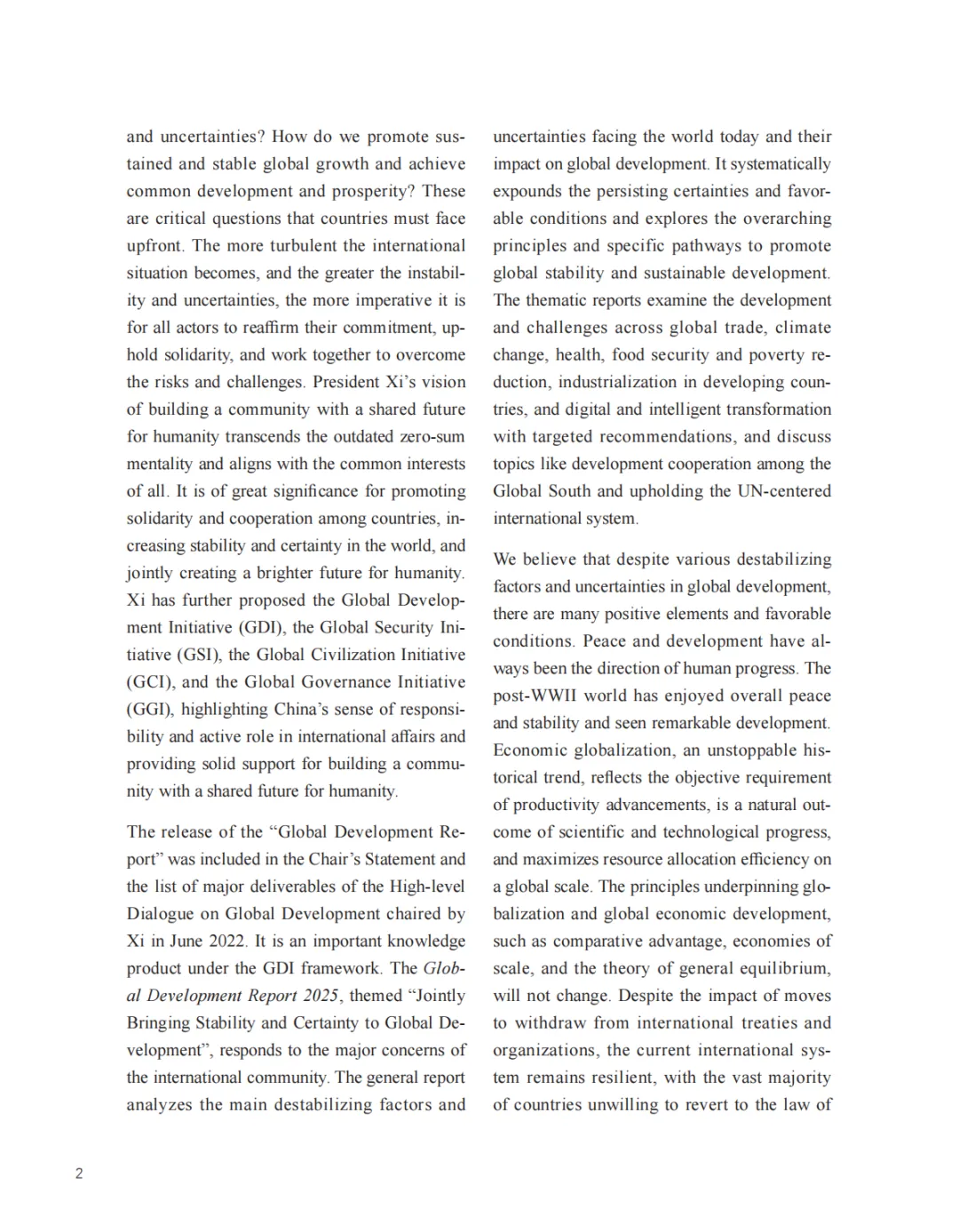 《全球发展报告2025》是一份由中国国际发展知识中心(CIKD)发布的、内容非常详实的报告,主题是 “共同为全球发展注入稳定性和确定性”。