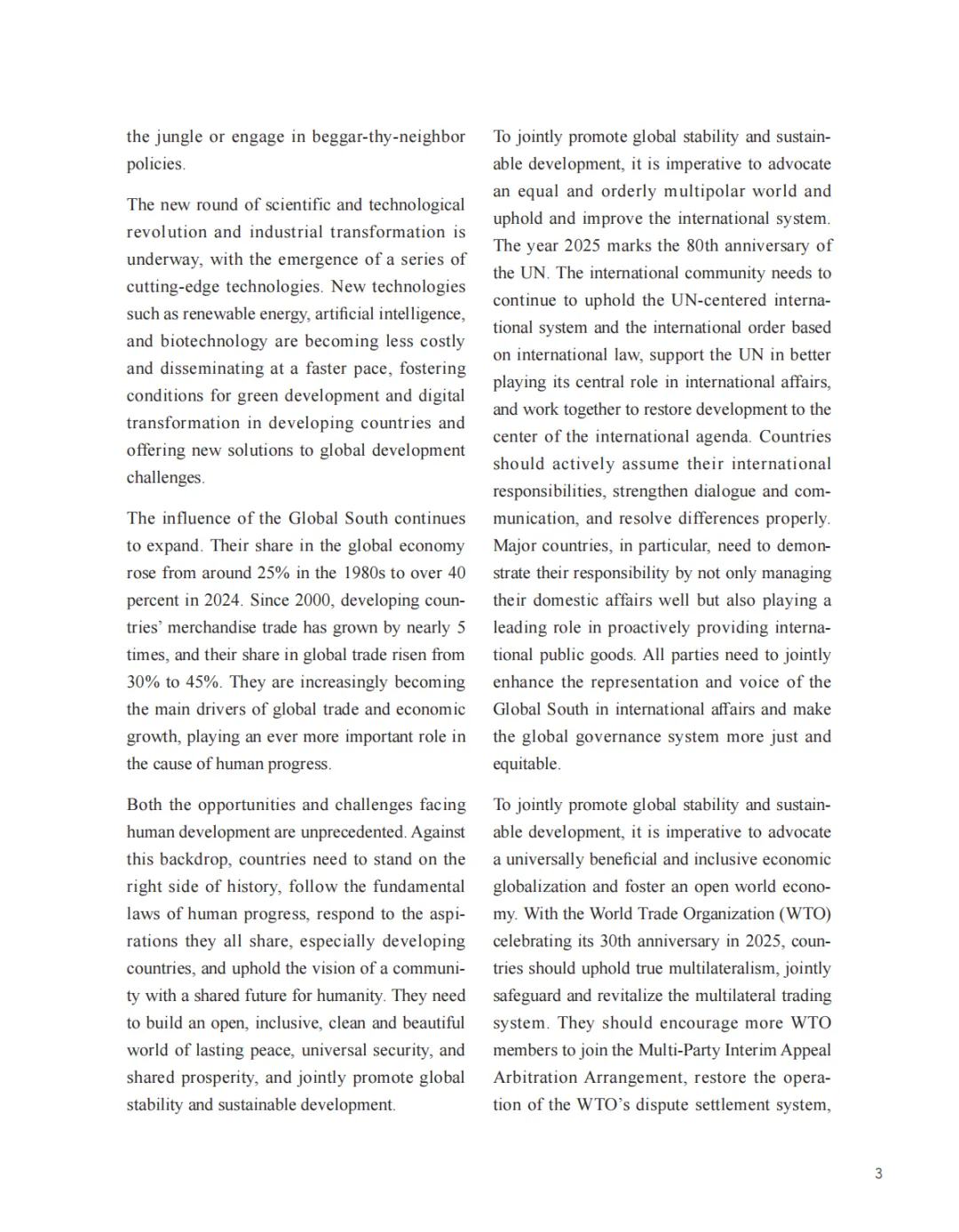 支持全球南方发展:通过互利合作增强发展中国家的自主发展能力。