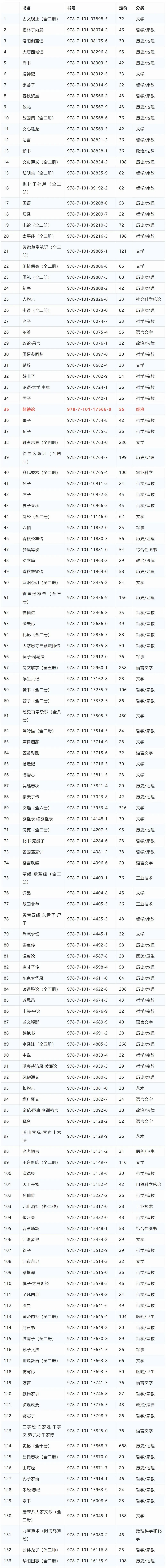 (友情提醒:没有百度网盘账号的朋友需要先行注册。链接所附为三张书目表格,分别是按出版时间排序、按分类排序以及按经史子集分类)