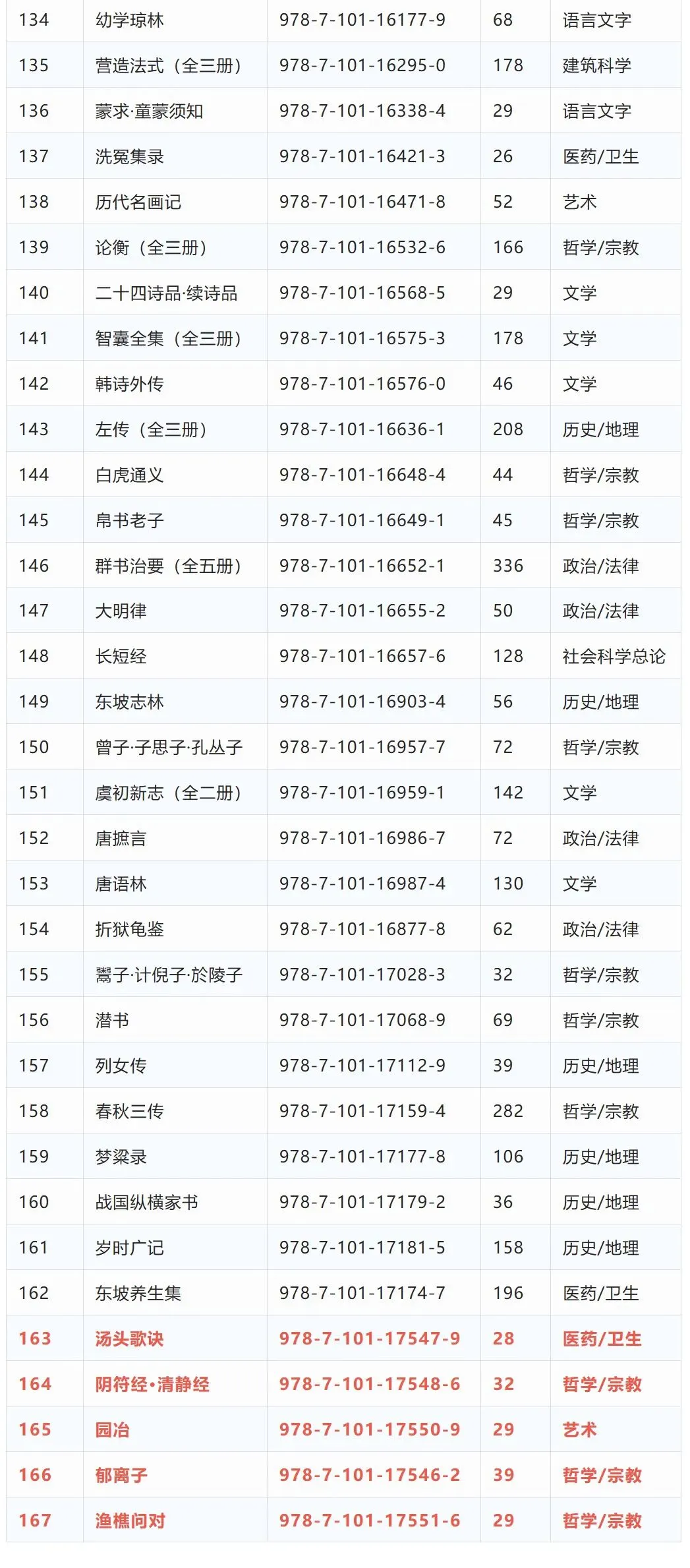 今年推出的 “三全本” 新书均在表格中以标红形式呈现(其中《盐铁论》为今年新修订的版本),文末附二维码,扫描即可下载更新后的完整书目表格。
