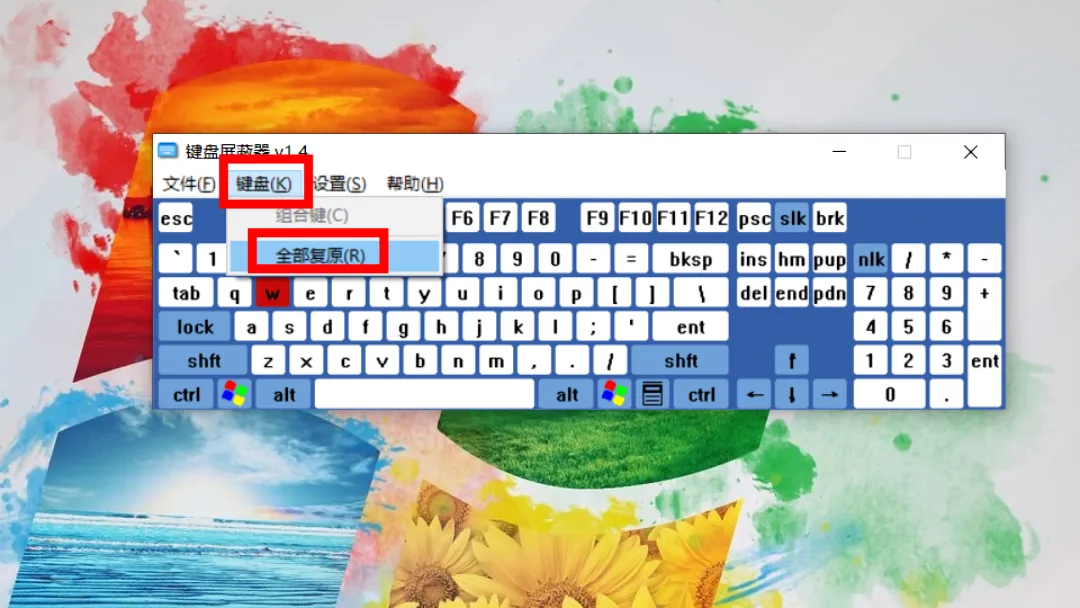 如果你禁用了太多的键位,你可以点击“键盘”按钮,一键恢复所有键位的使用。