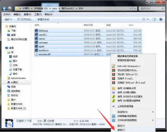 12、打开cass9.1文件位置(具体位置请以第5步的安装路径为准),将破解文件粘贴到bin文件夹下。