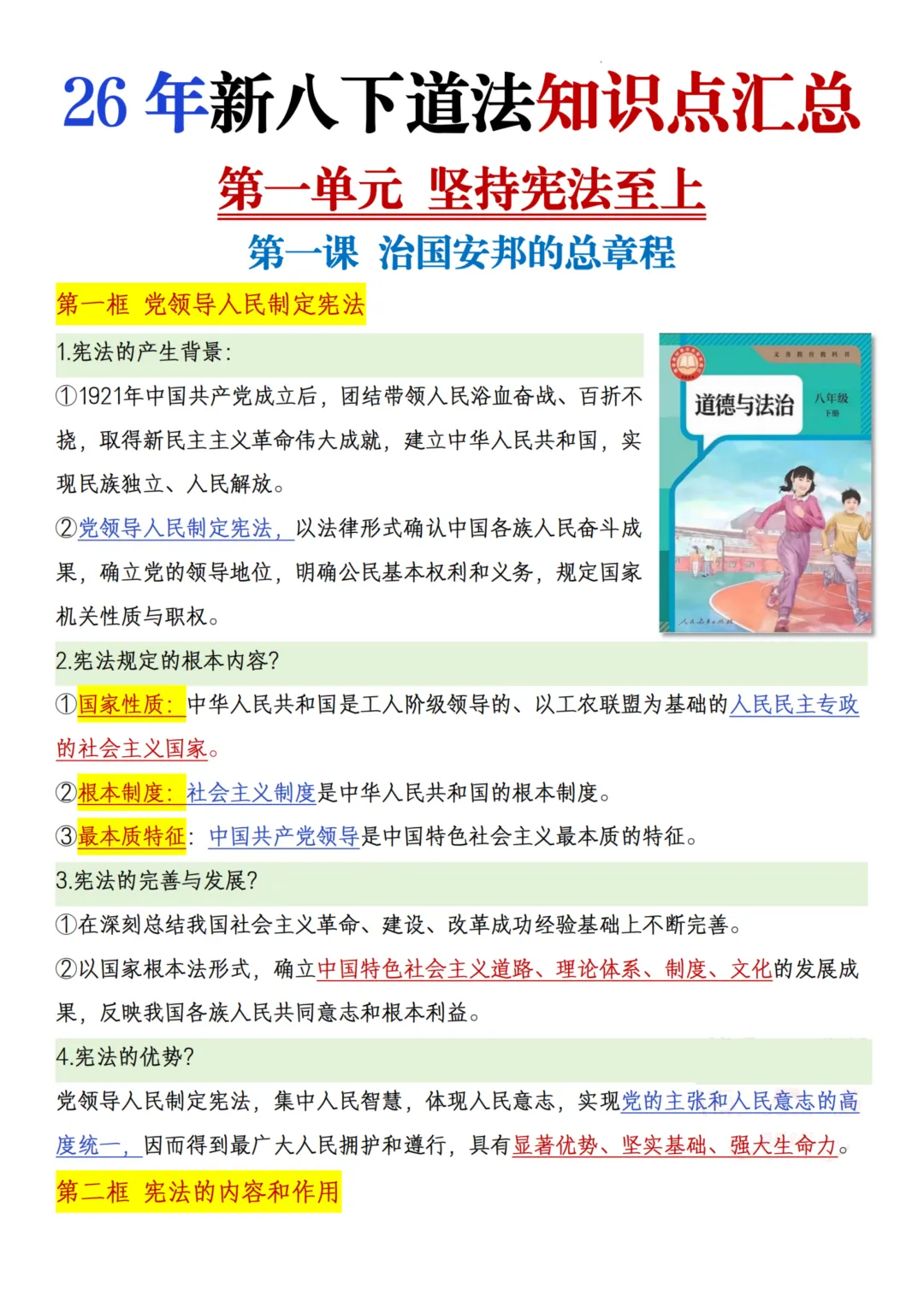 今天给大家分享的是【八下道法】26春版知识点-22页电子版可下载打印,下载方式详见页面底部。更多学习资料获取请持续关注【星星资料库】公众号。