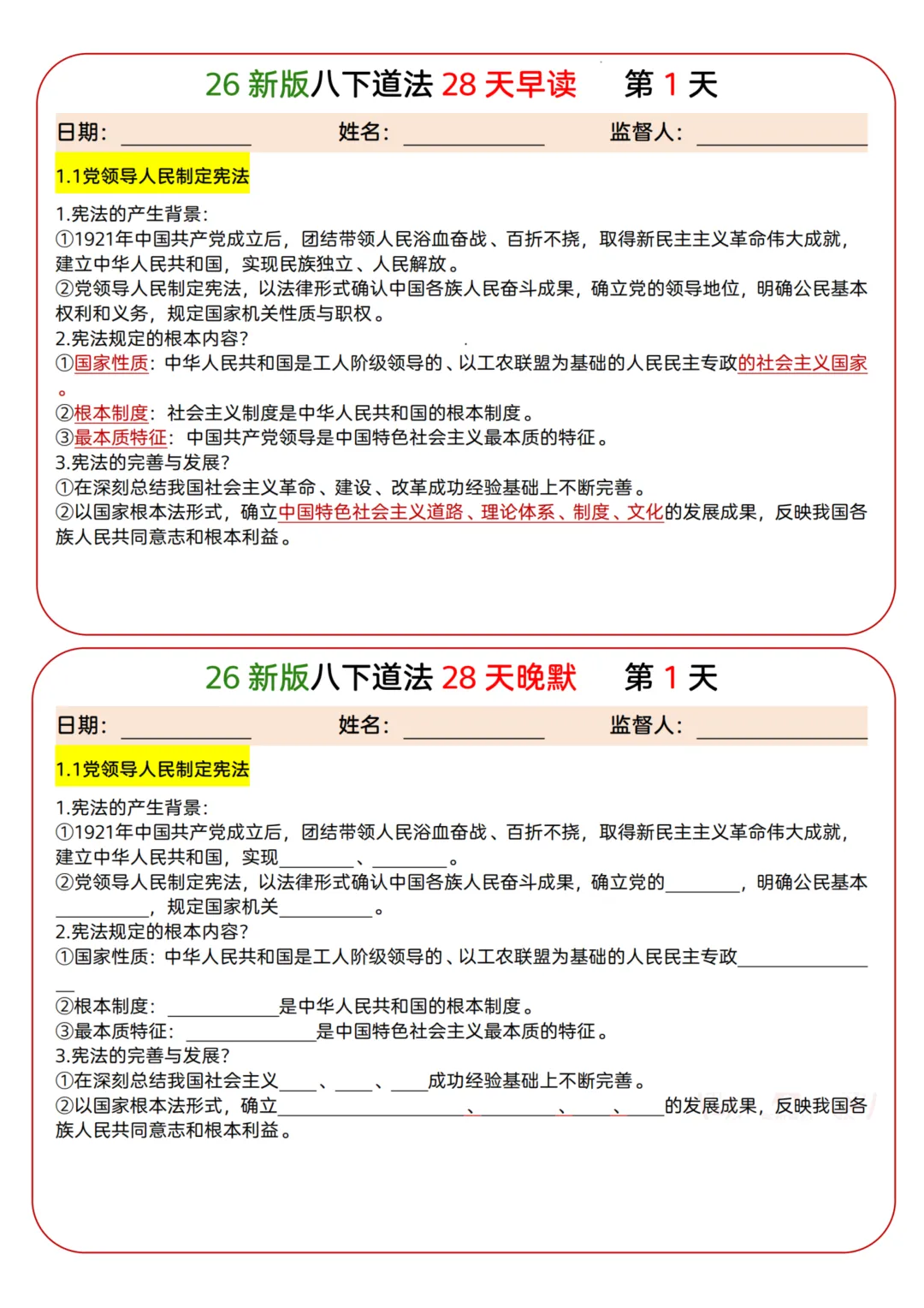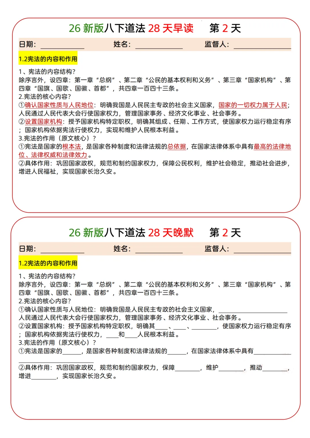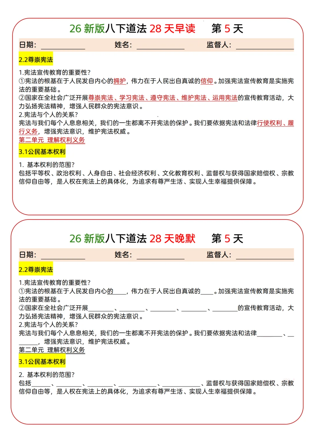 26年新八下道法早读晚默-28页电子版可下载打印 今天给大家分享的是26年新八下道法早读晚默-28页电子版可下载打印,下载方式详见页面底部。更多学习资料获取请持续关注【星星资料库】公众号。 领取电子版请拉到文末 篇幅有限,仅展示部分内容 下载说明 第一步:点赞、在看,关注下边公众号 第二步 免费领取,添加小编微信免费领取。