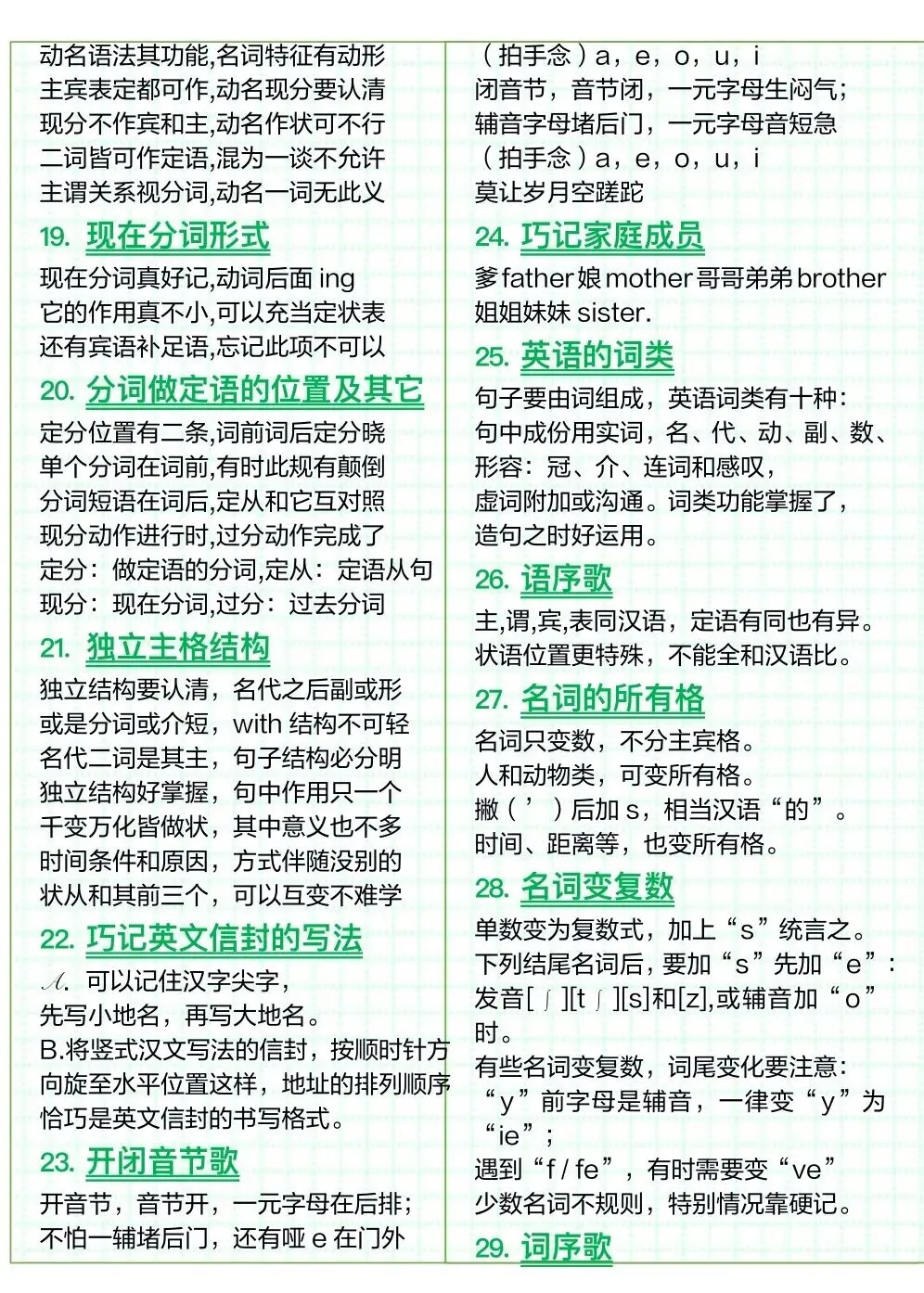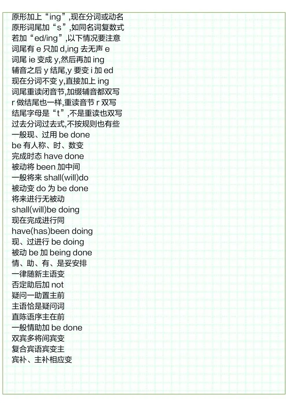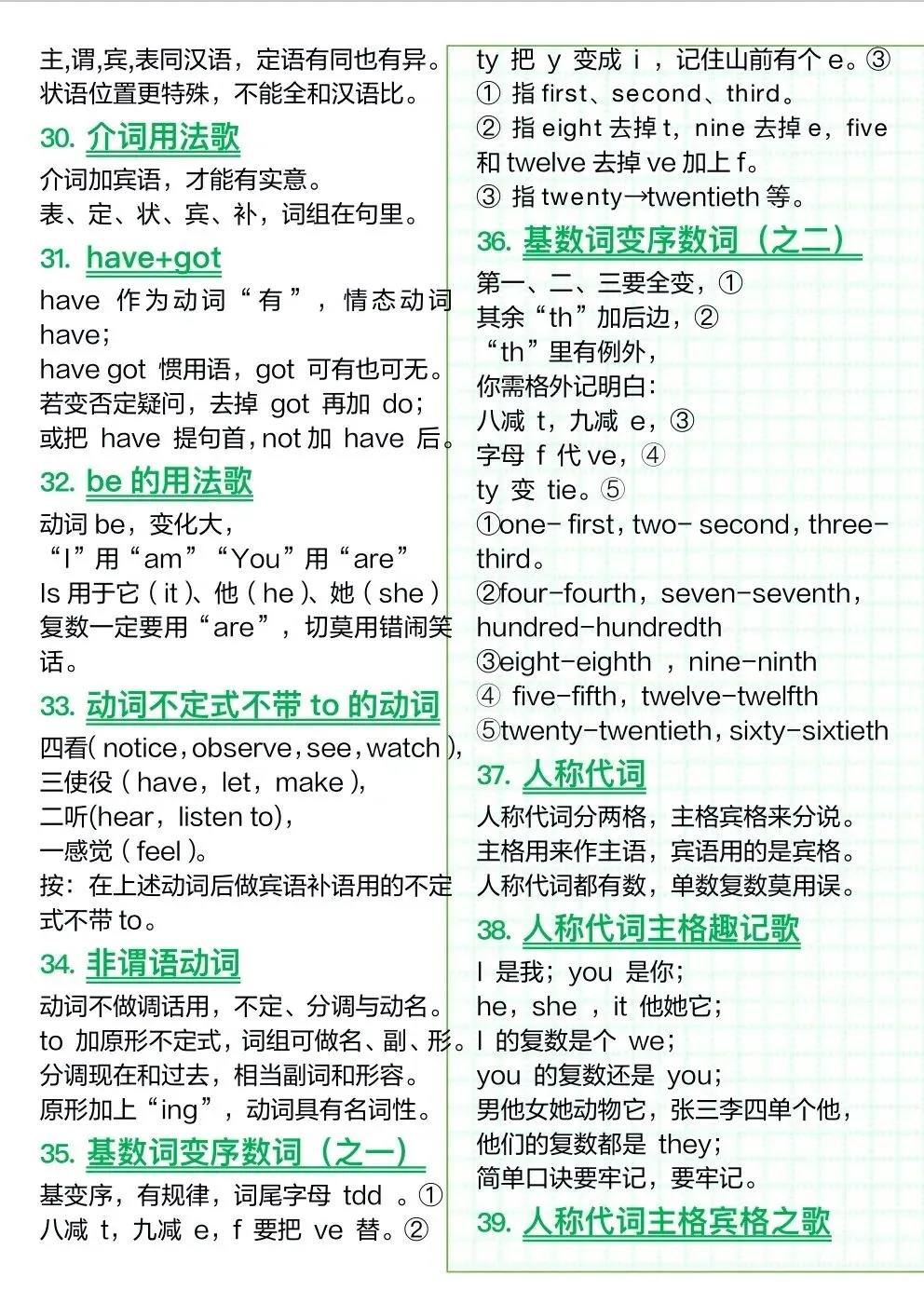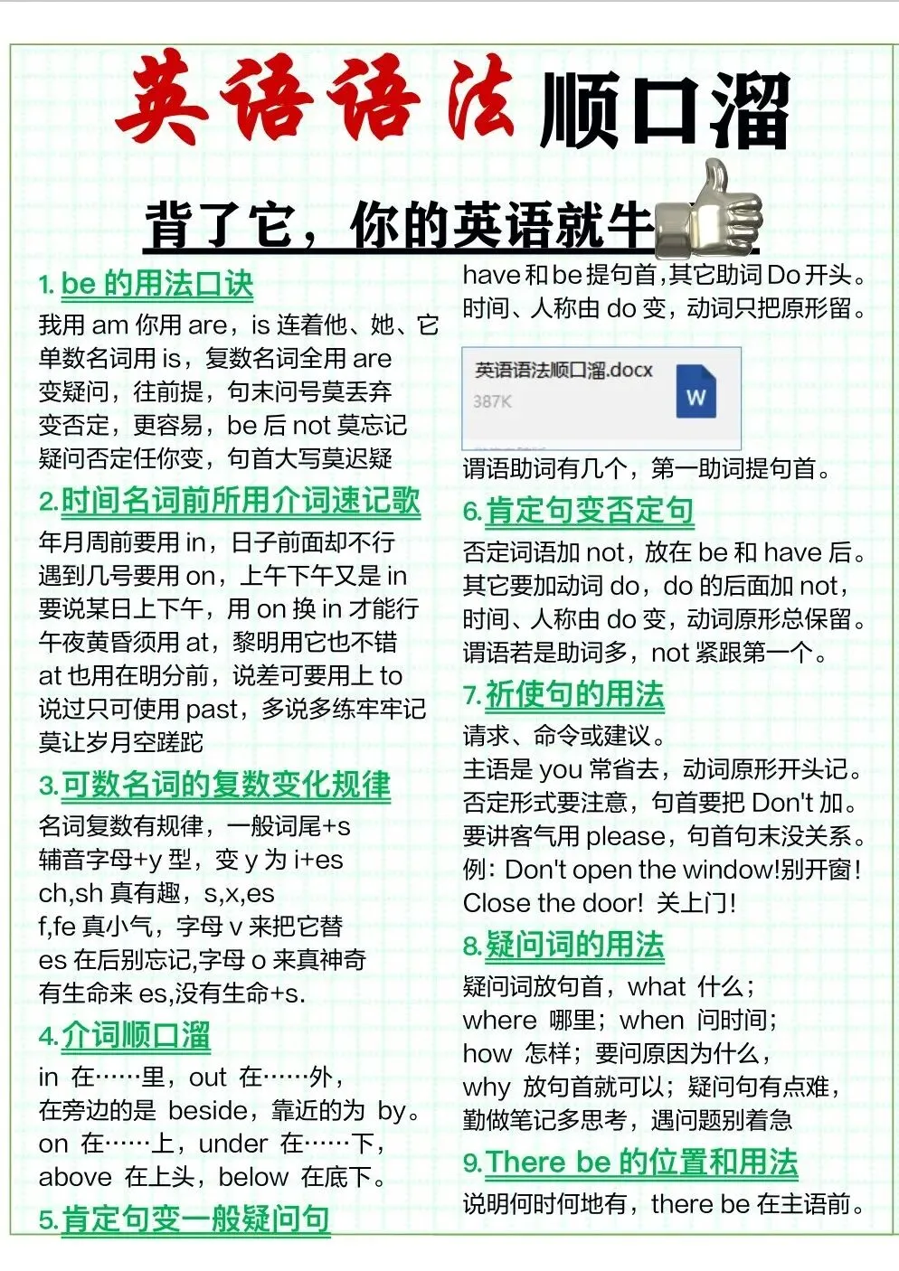 这份三年级英语语法顺口溜,把零散的语法知识点变得简单好记,