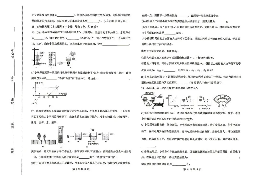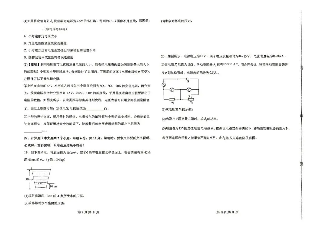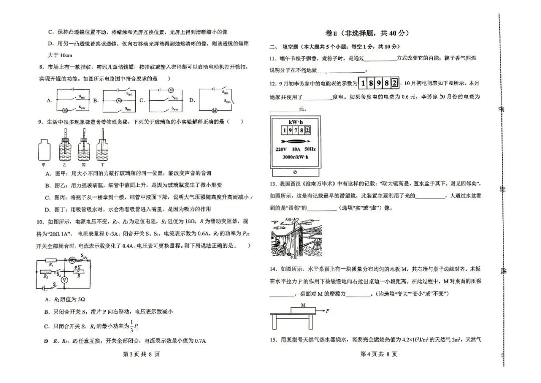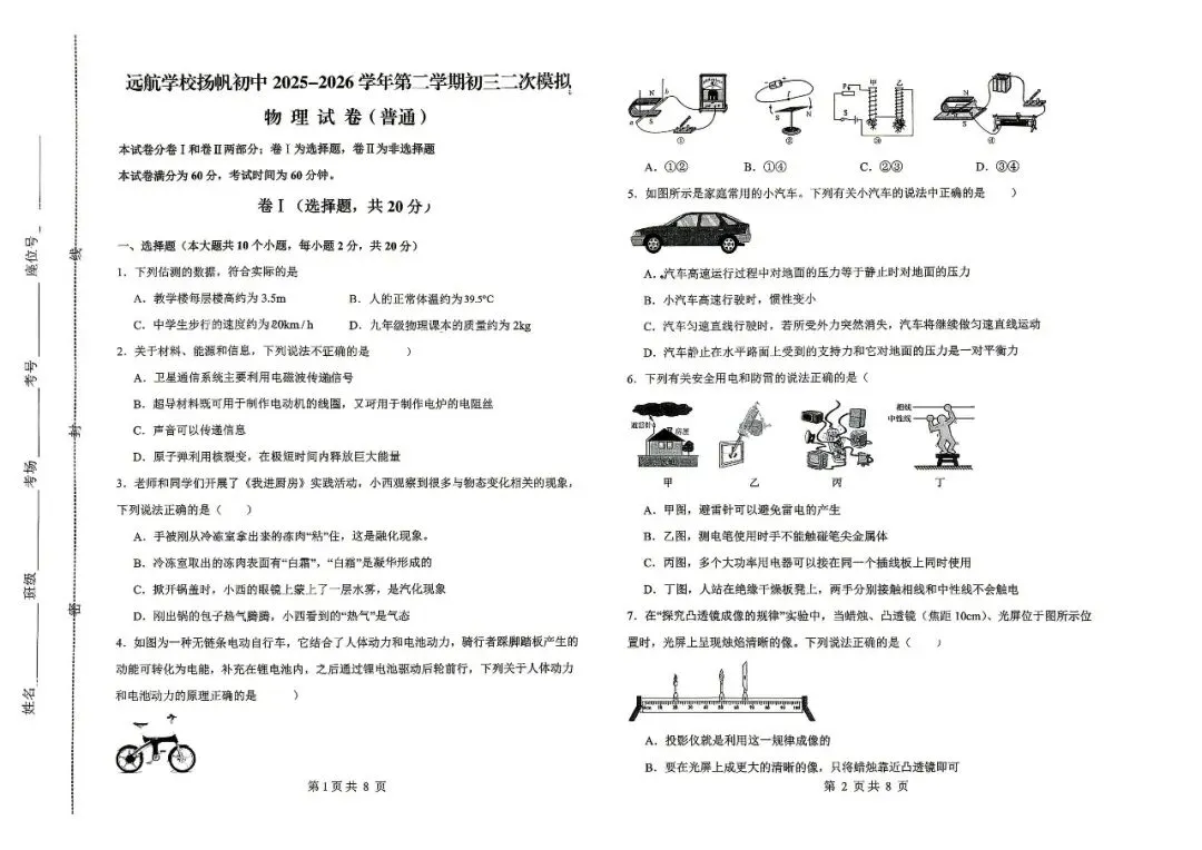 邯郸市扬帆中学九下二模【物理】卷-可打印