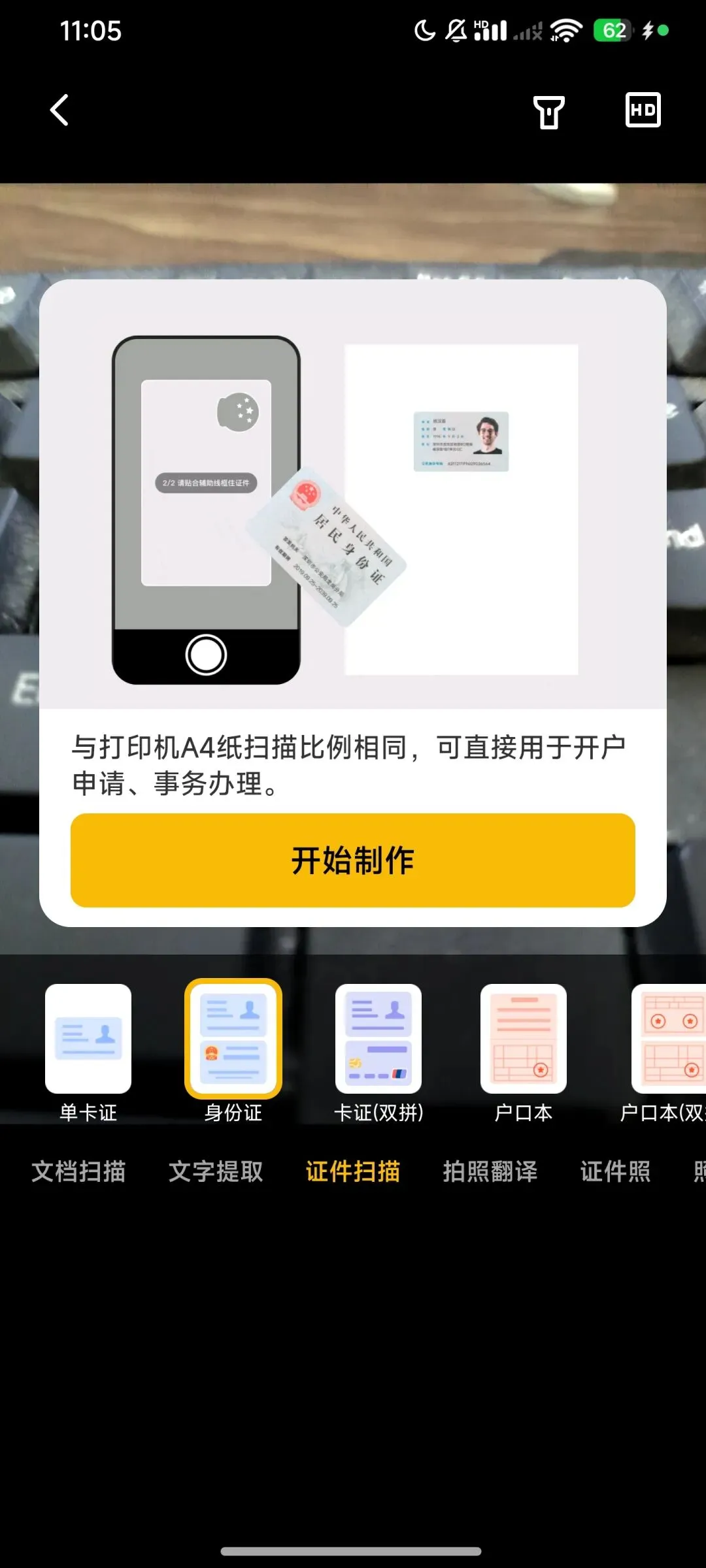 通过这个软件,你还以进行证件的扫描,这个功能对于平时有去办事或是需要传一些身份证正反面资料的朋友来说,是比较的实用的。它可以直接帮你自动拼在一页上面,还能自己加上仅用于啥啥啥的水印,尺寸什么的也会自动帮你弄好,平时去办事直接拿着就能用,再也不用跑去那种打印店折腾了,方便又好用。