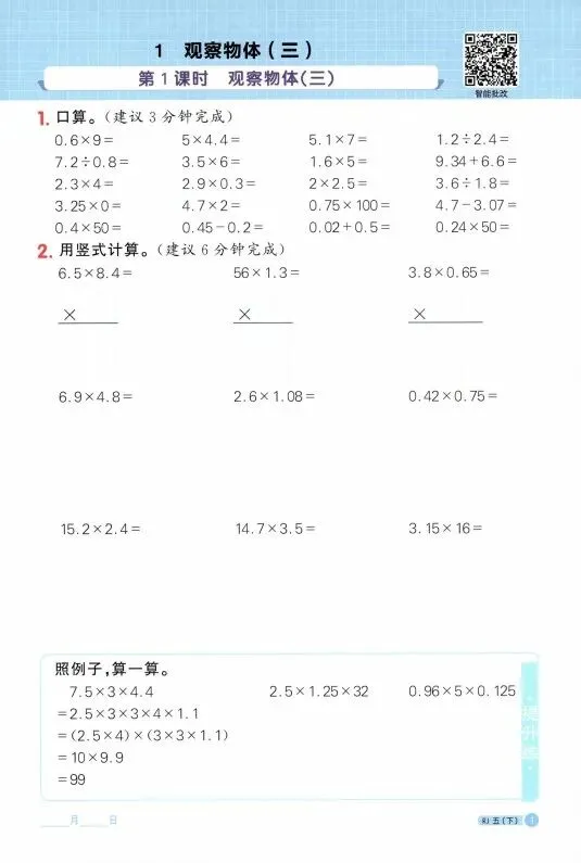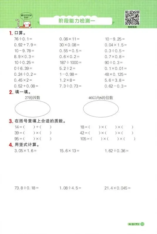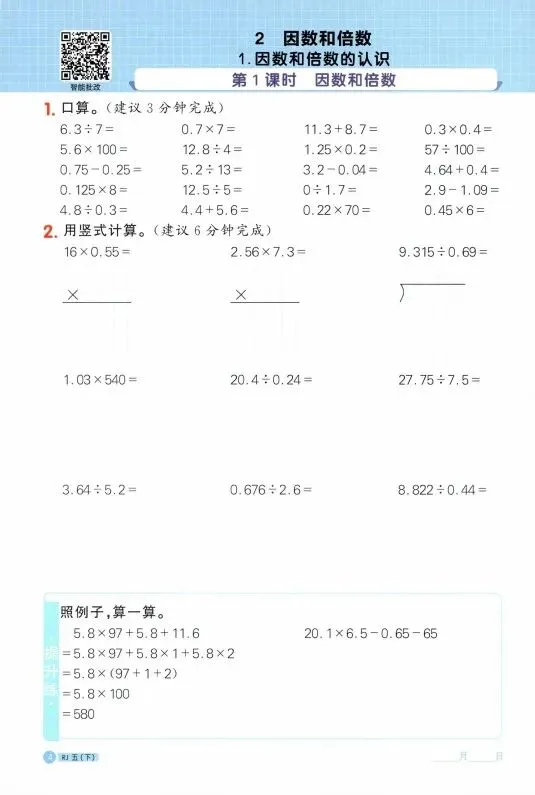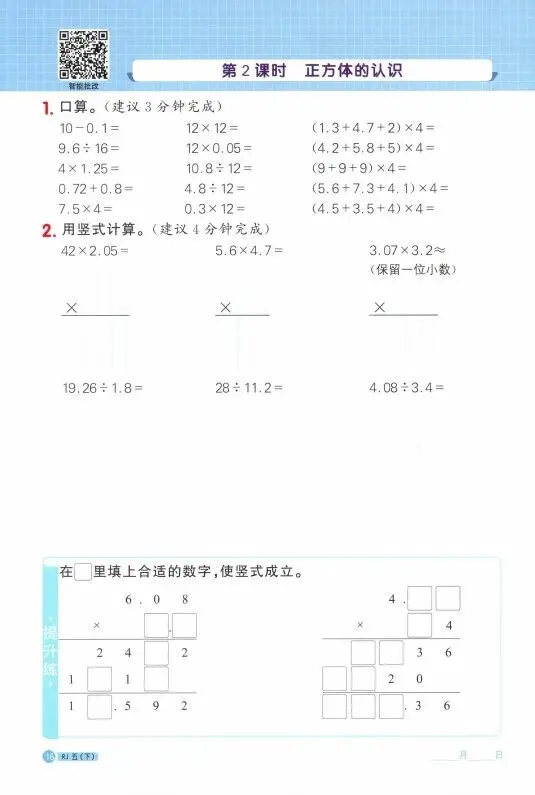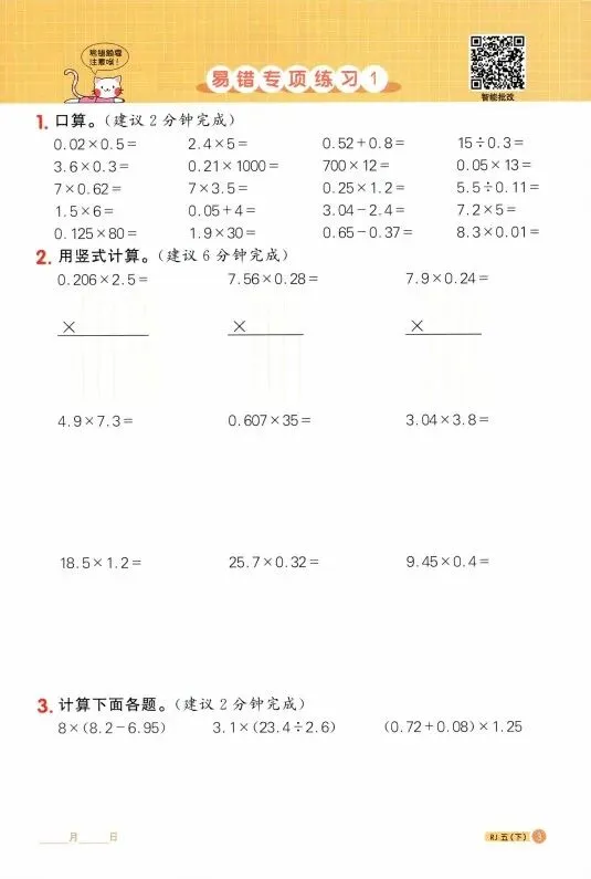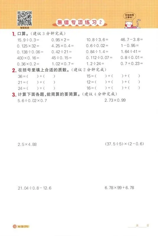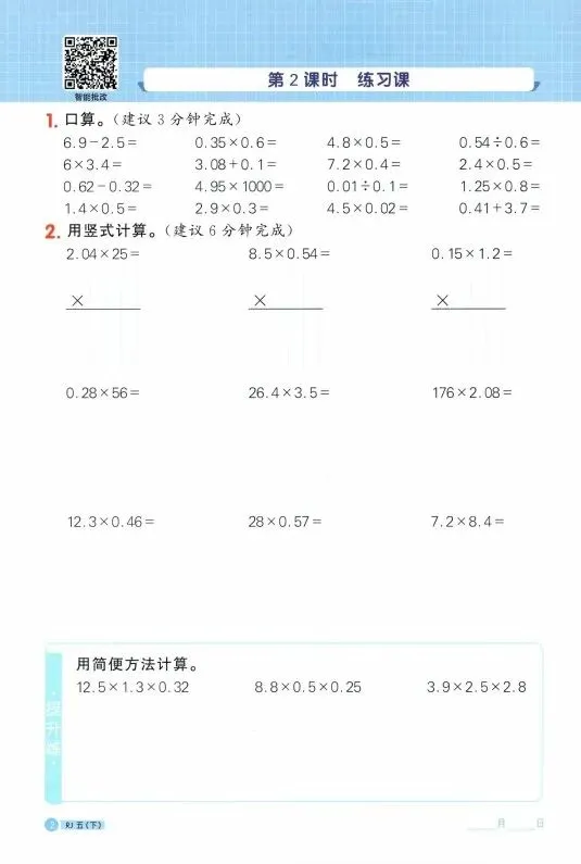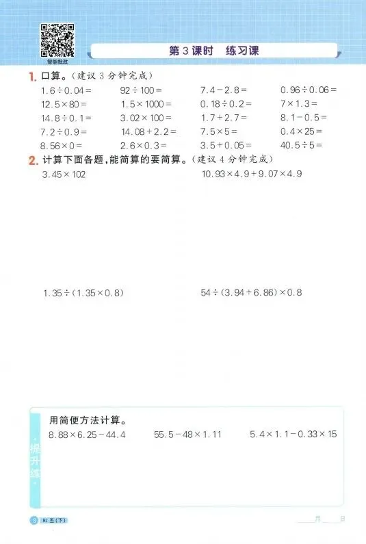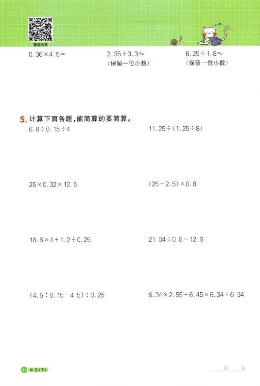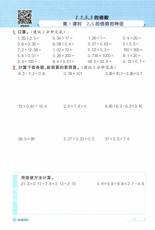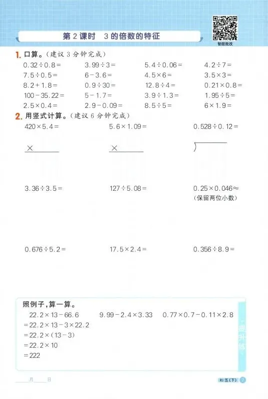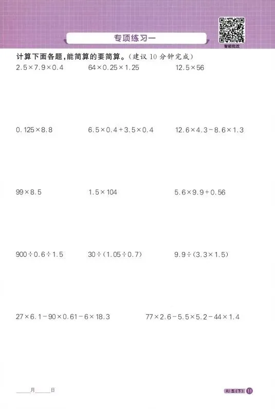 五年级下册数学同步计算每日一练(完整电子版可打印)
