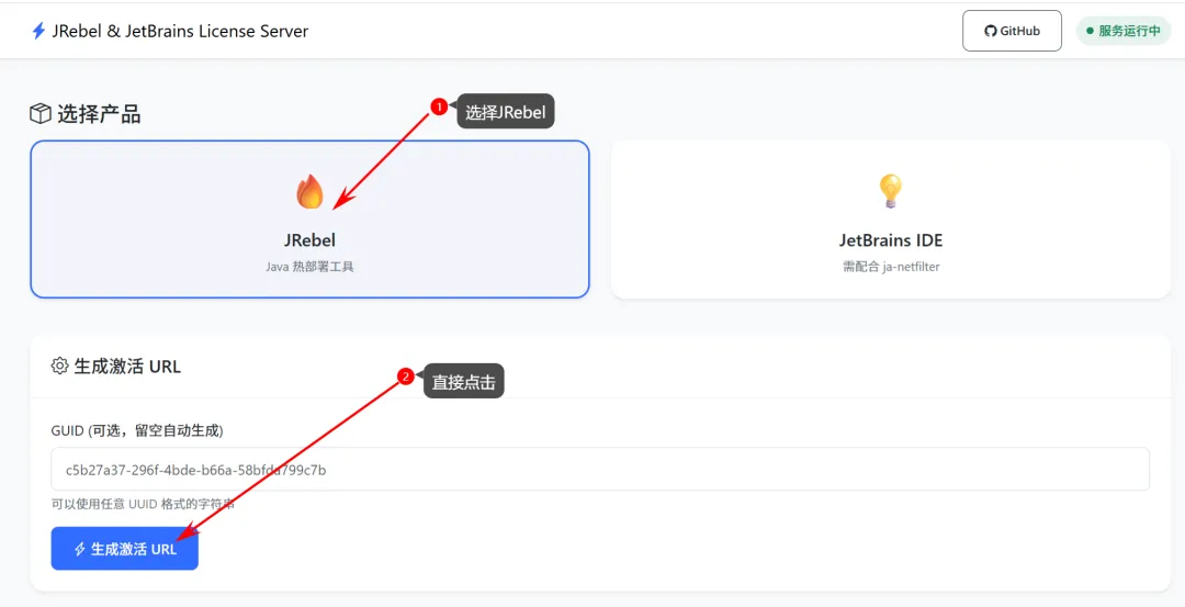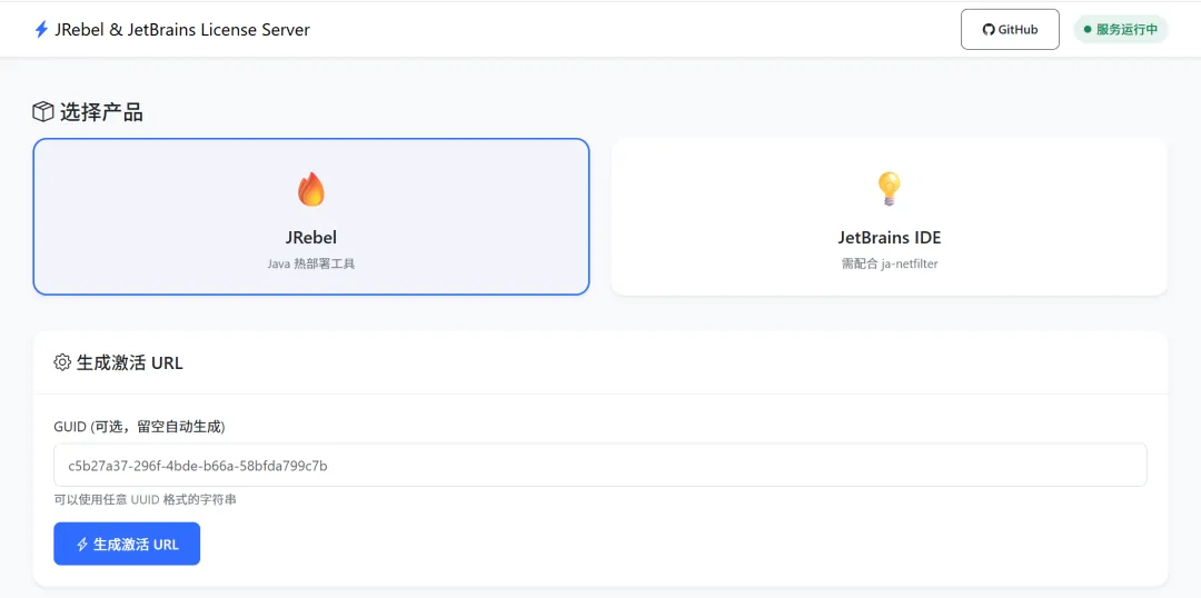 2. 访问网站:https://idea.156354.xyz/ ,选择JRebel,直接点击【生成激活URL】