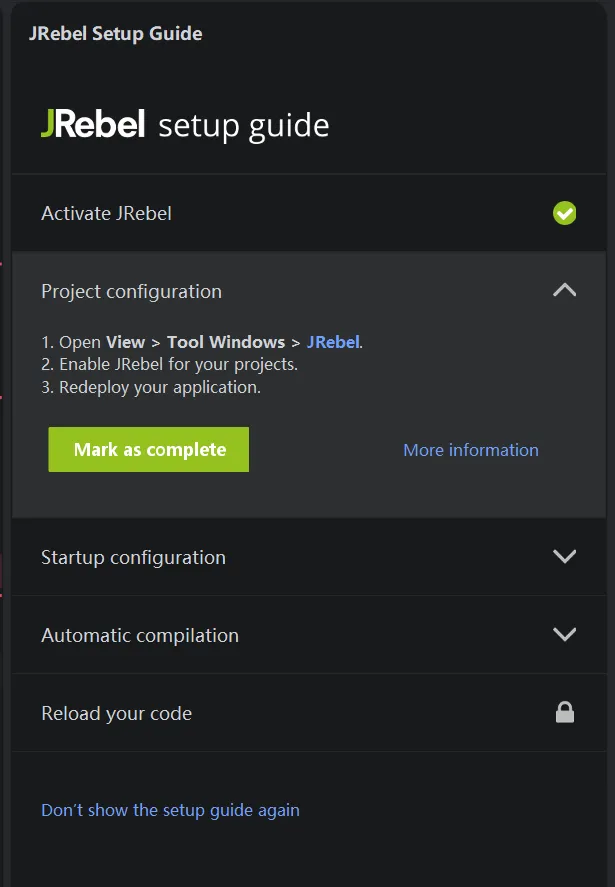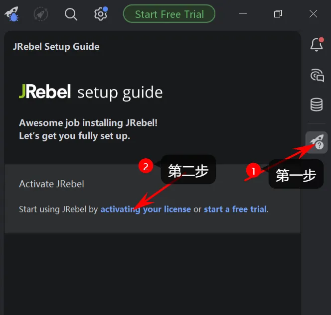 1.点击【JRebel setup guide】中的【Activate JRebel】