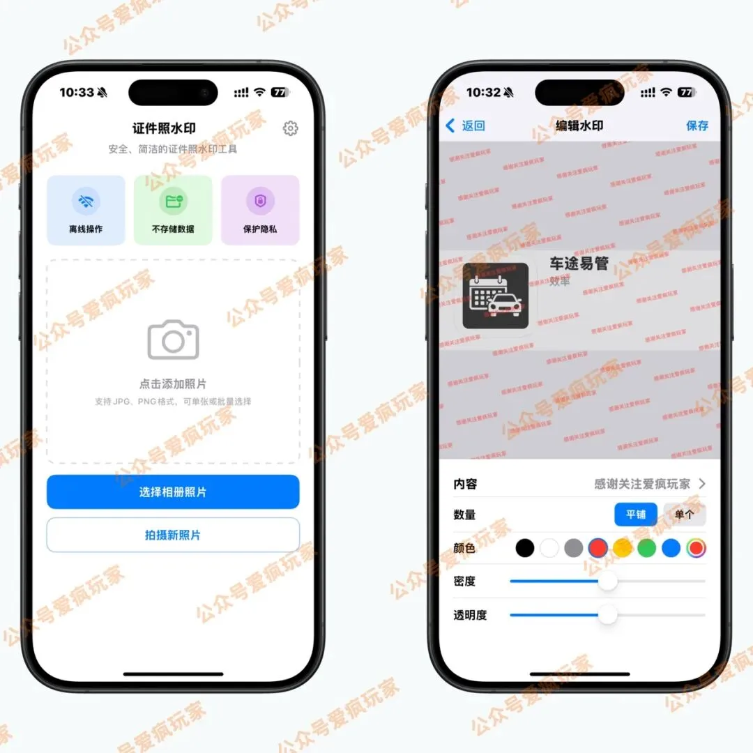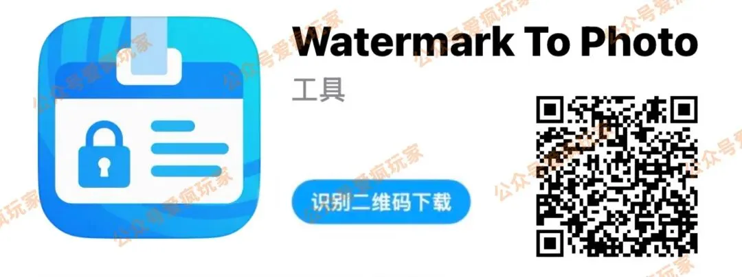 宝藏App分享,我做公众号的利器之一! 本文部分内容来源于网络,侵权请联系删除,谢绝转载。 今日分享 01(水印添加神器) 今天分享的是一款叫WaterMark To Photo的水印工具,为照片添加水印特别方便。我平时公众号图片就是这么添加的,可以批量加几十张图的水印超省事,单张微调也够细腻。颜色随便选,自定义都行;手势拖拽调位置、大小、旋转,很顺手。最常用的是智能平铺和透明度调节,既护图又不抢眼。出图质量一点不糊,摄影师、发社交媒体、品牌打标都实用。操作就四步:选图、打字、调样式、存相册。目前这款应用正在限免中,手慢无。 获取方式: 点开下方卡片,长按图片识别即可。 尚不可用代表已经下架,随时失效,尽快获取。没有了等待下次更新。 最后想说: 其他几款资源,需要的可以点击下方卡片,发消息:资源合集 ①苹果应用商店极品App,速收 ②牛啊,ios最新福利神器又挖到了 ③一键拦截神器,支持离线自动过滤,终身会员永久激活!