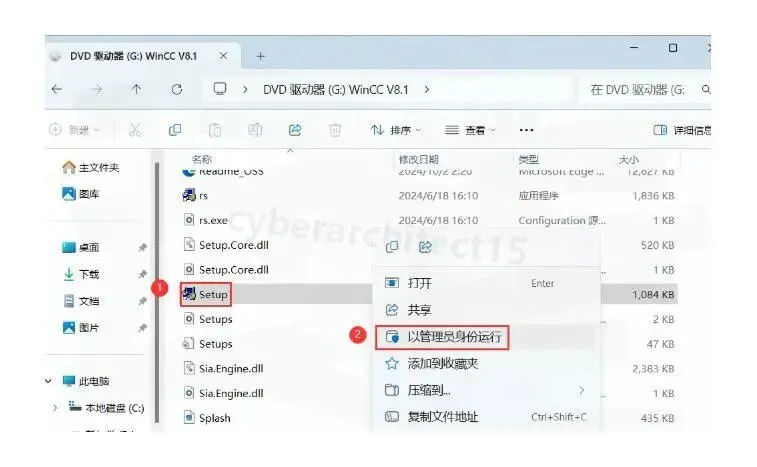 5、装载后会出现一个新的虚拟光驱,找到【Setup】文件,右键选”以管理员身份运行”。记住,管理员权限很重要!