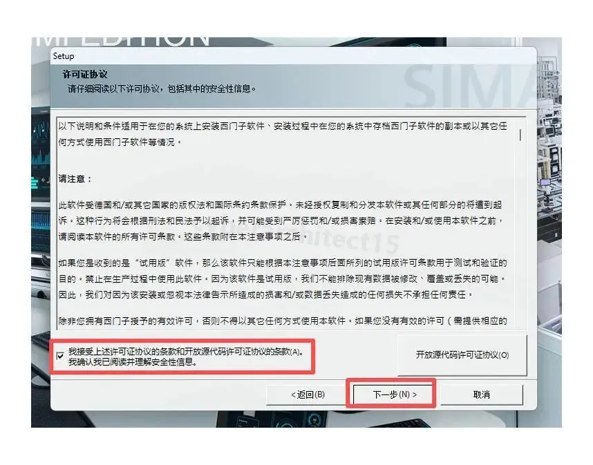 16、再一次勾选【我接受…】选项,点击【下一步】。说实话,这些协议界面有点多,不过坚持一下就过去了。