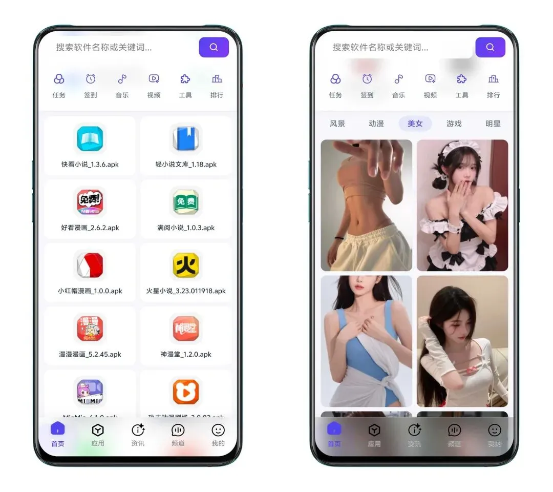 – 壁纸/资源模块:内置风景、动漫、美女、游戏等多类壁纸,轻松吸引用户停留