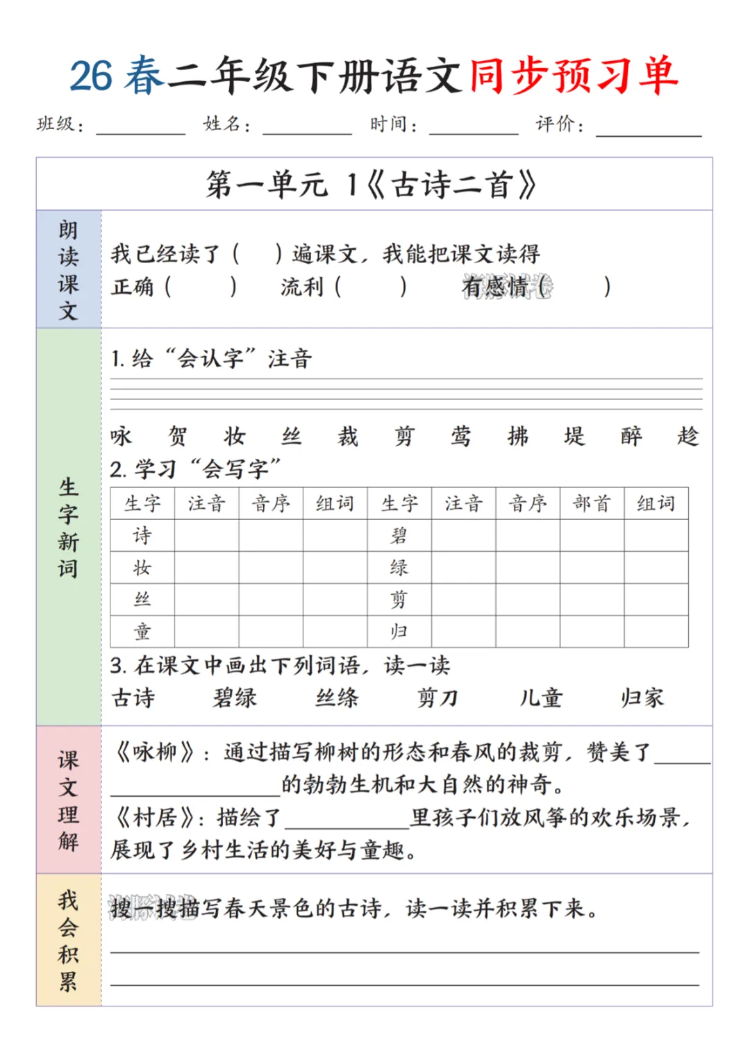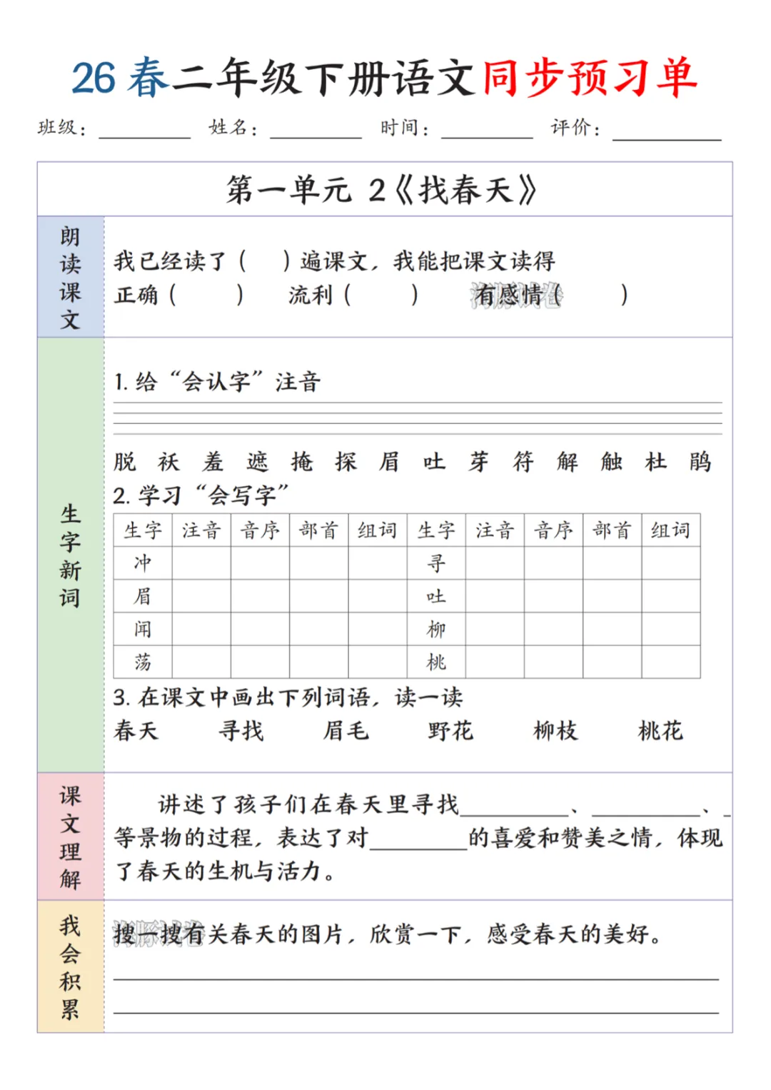 26春二年级(下)语文同步预习单.pdf