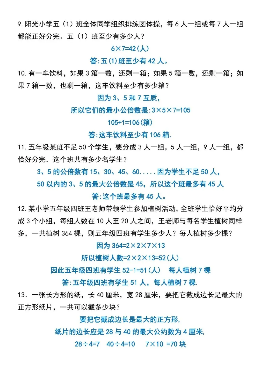 可下载丨26春五年级下册数学《倍数与因数应用题》专项训练,电子版