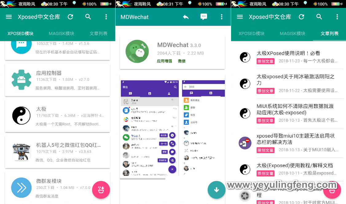 若手机不能root同样有可以解决的办法,站内分享过两款免root就能体验 Xposed框架的神级应用,也就是通过第三方应用在手机中构建以和虚拟的Xposed框架环境,相关介绍请访问原文章VirtualXposed框架虚拟机——无需root体验xposed框架、(安卓)太极APP — 免root使用Xposed框架