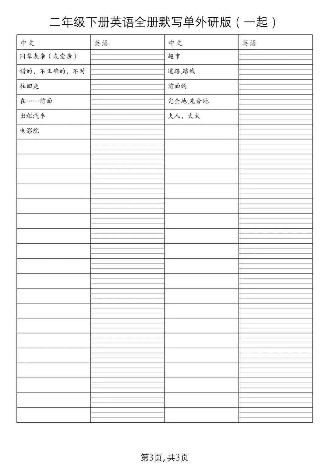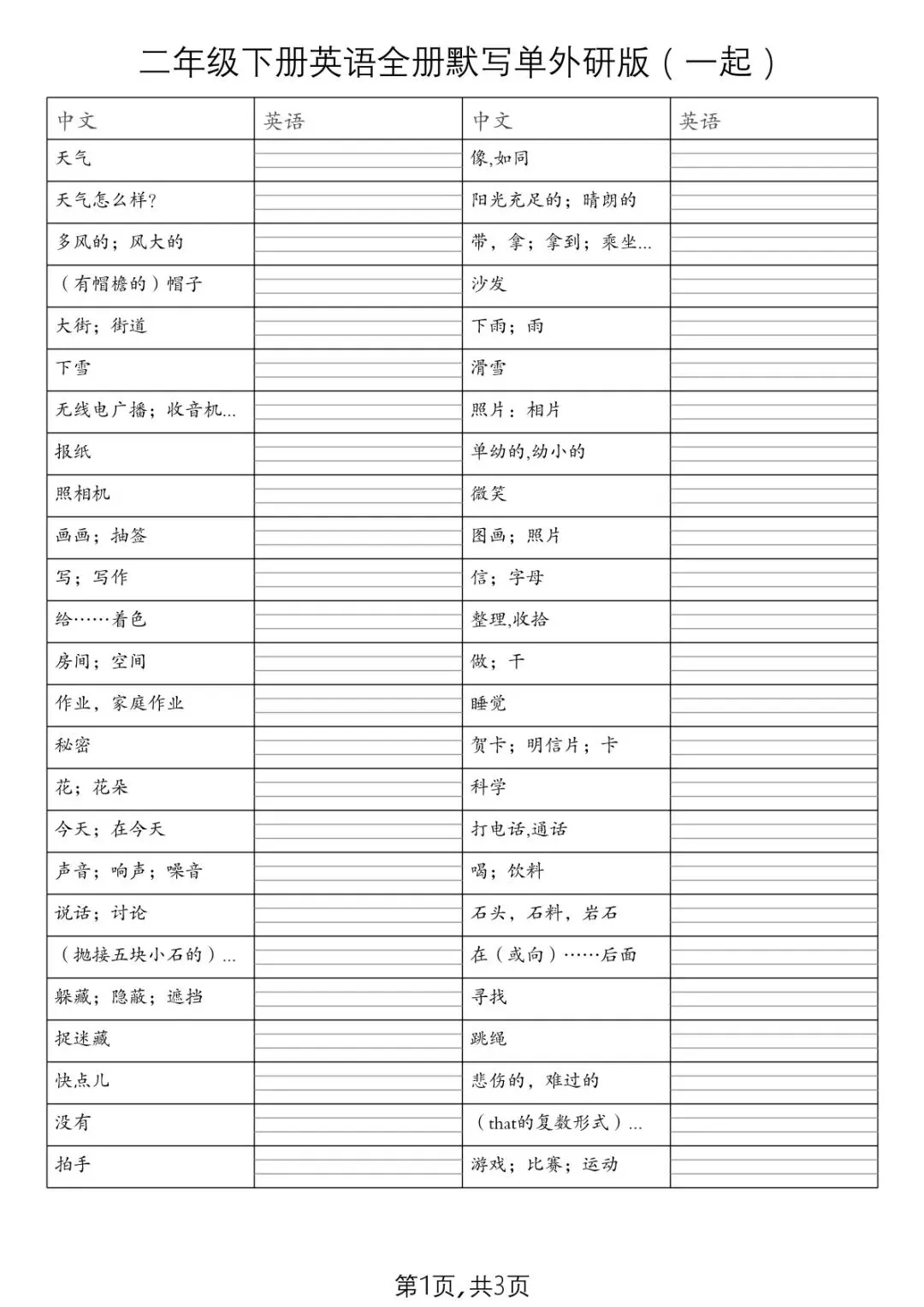 可下载丨26春二年级下册英语全册默写单(看中写英)《外研版(一起)》,电子版