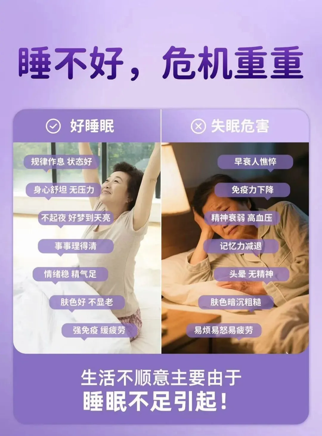 ❌普通助眠品:”让你睡得着”