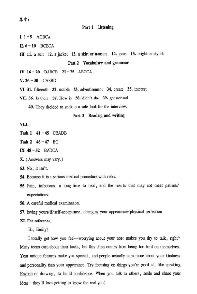 【八下初中英语教材同步练习电子版+答案】