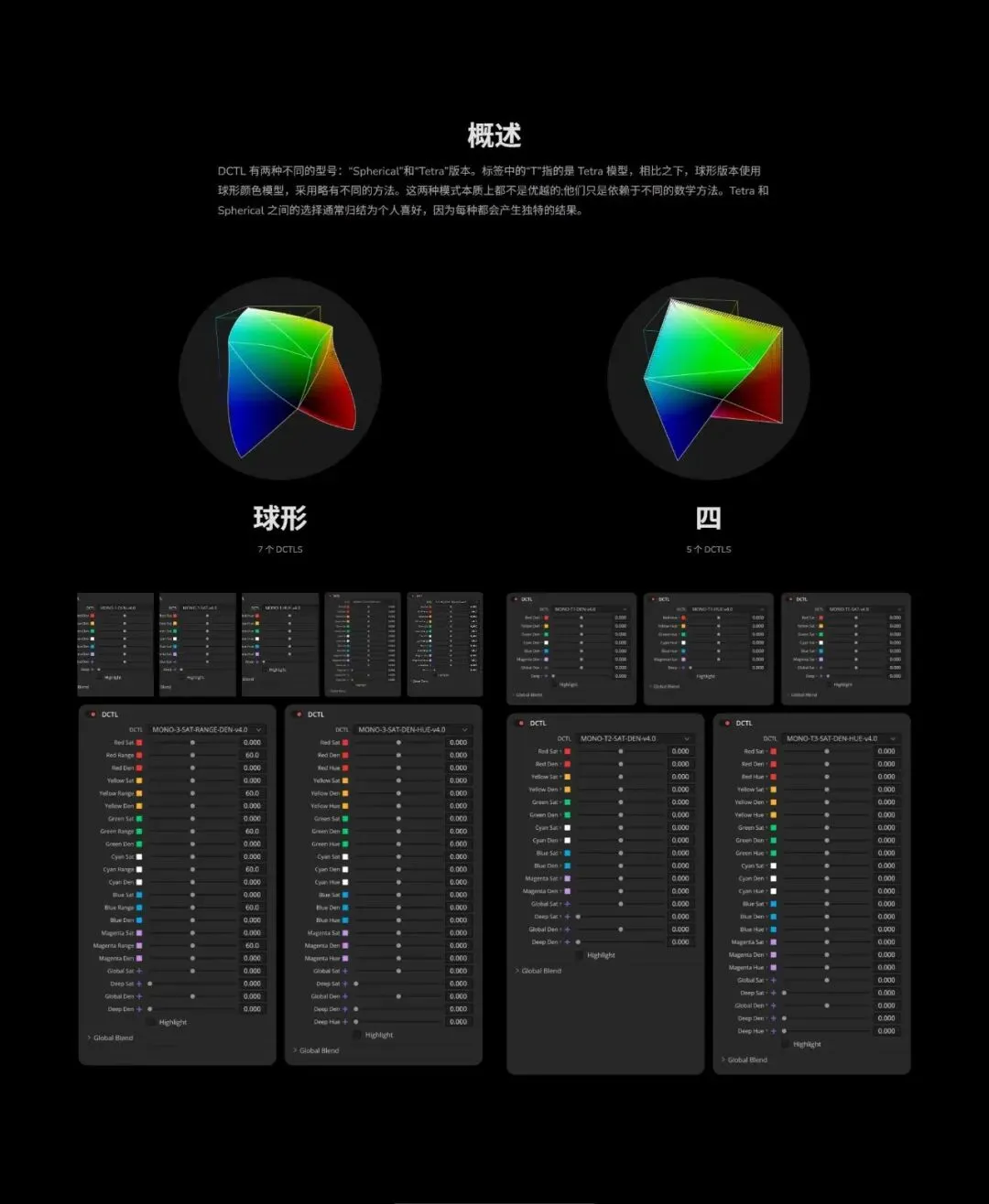 该包通常每个类别包含两个 DCTL,每个 DCTL 都基于不同的数学基础,这会导致结果略有不同。“T”代表 Tetra,我用自己的代码扩展了它。用户可以选择他们喜欢应用哪种 DCTL,具体取决于哪种 DCTL 为他们的特定镜头产生最吸引人的结果。这种灵活性允许更大的定制,并确保每个项目的最佳结果。所有DCTL都可以根据自己的喜好自由混合和排列。