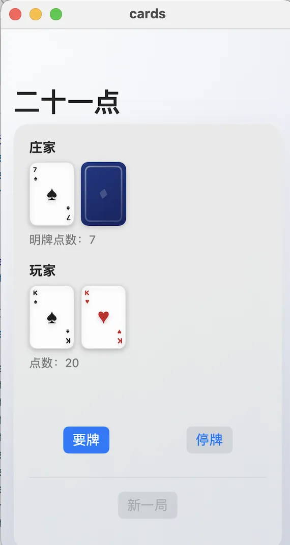 最近打开互联网,大家都在讨论 Claude 如何如何强大,但是 A 厂对于国内的敌视和摆烂也是有目共睹,如果想自己去搞定账号和支付问题,对于普通人来说还真不是一件容易的事,莫慌我也没搞定,实在想用可以去咸鱼上看看。今天的主角是我之前在用的 cursor,支持国内银行发行的 VISA 卡,最近正好是一个清明假期,抽了两个早上的时间开发了一个简单的 IOS 棋牌小游戏 21 点,也是我20 年前在手机上玩到上头的小游戏。