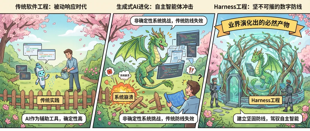 生成式AI从被动响应的辅助工具向具备规划能力的自主智能体进化,暴露出了传统软件工程实践在应对非确定性系统时的极大无力感。Harness工程并非凭空产生的学术概念,而是业界在遭遇多次系统性崩溃后,为了建立坚不可摧的数字防线而演化出的必然产物 ⁹。