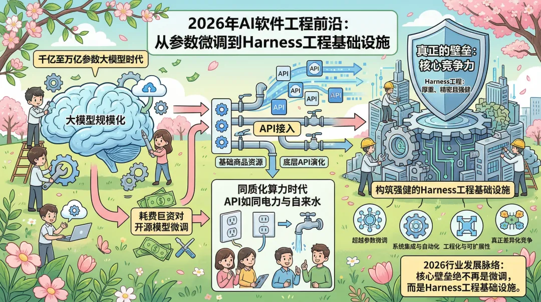 经过对2026年AI软件工程前沿的深度剖析与工业级落地的全景式检视,我们能够梳理出一条清晰无比的行业发展脉络:随着千亿甚至万亿参数规模大模型的训练成本逐年降低,其底层API接入正在以前所未有的速度演化为如同电力与自来水一般的基础商品资源。在这样一个高度同质化的算力时代,一家企业或开发团队试图在激烈的AI竞逐中构建核心竞争力,其真正的壁垒绝不再是耗费巨资对开源模型进行细枝末节的参数微调(Fine-tuning),而是其是否能够构筑起一套厚重、精密且极度强健的Harness工程基础设施 ³。