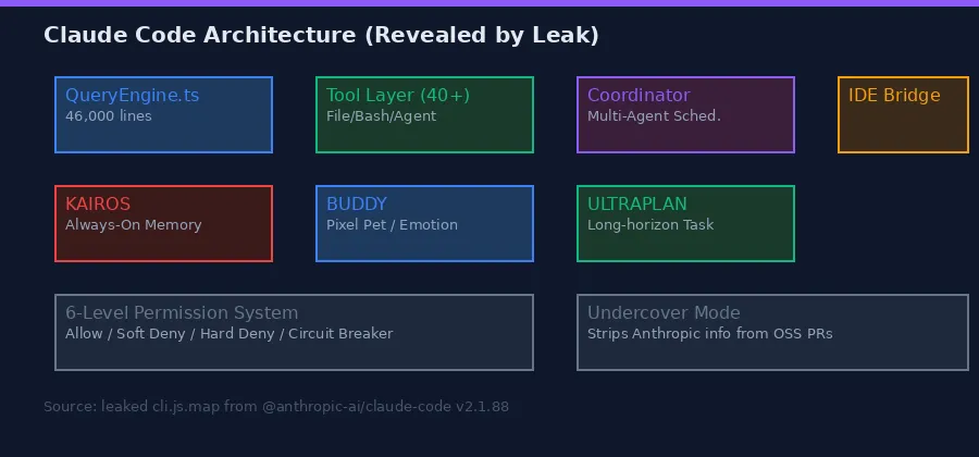 值得注意的是:这次泄露不涉及用户数据、API密钥和模型权重,泄露的只是客户端工具的源码。真正的核心竞争力——Claude模型本身的推理能力——并未受损。