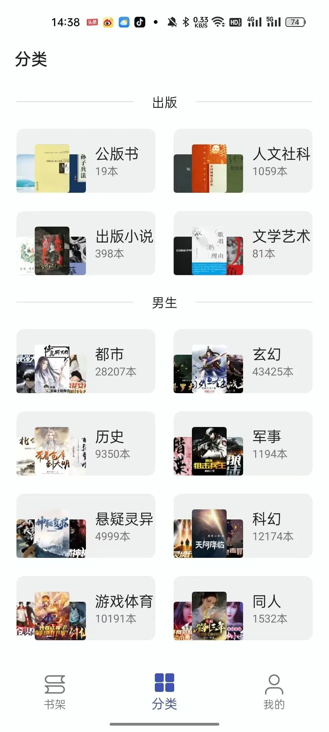 其次,这款工具还做了一个分类,分别是出版、男生和女生,大家喜欢看什么类型的就自行选择啦,主打一个简洁好用。