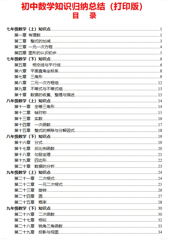 初中【数学】知识点归纳汇总 免费分享 可下载