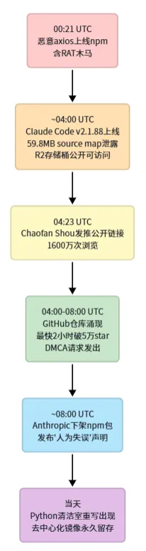 如果在 2026年3月31日 00:21-03:29 UTC 之间通过 npm 更新过 Claude Code,请立即检查 lockfile 中是否包含恶意 axios 版本。