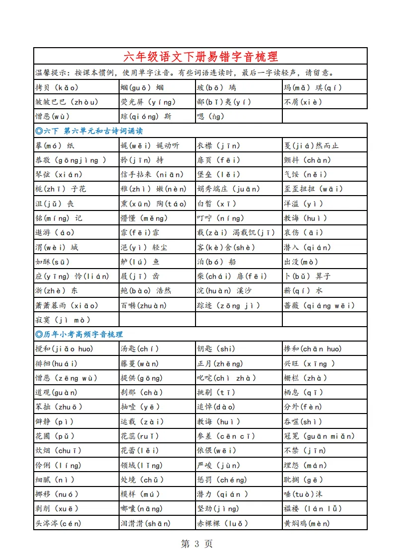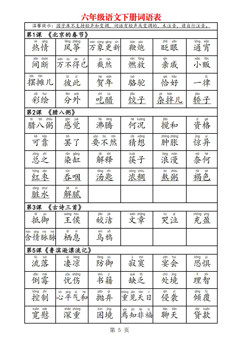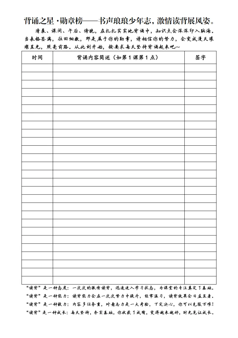 26春 六年级下 语文《每日背诵》电子版可下载打印!