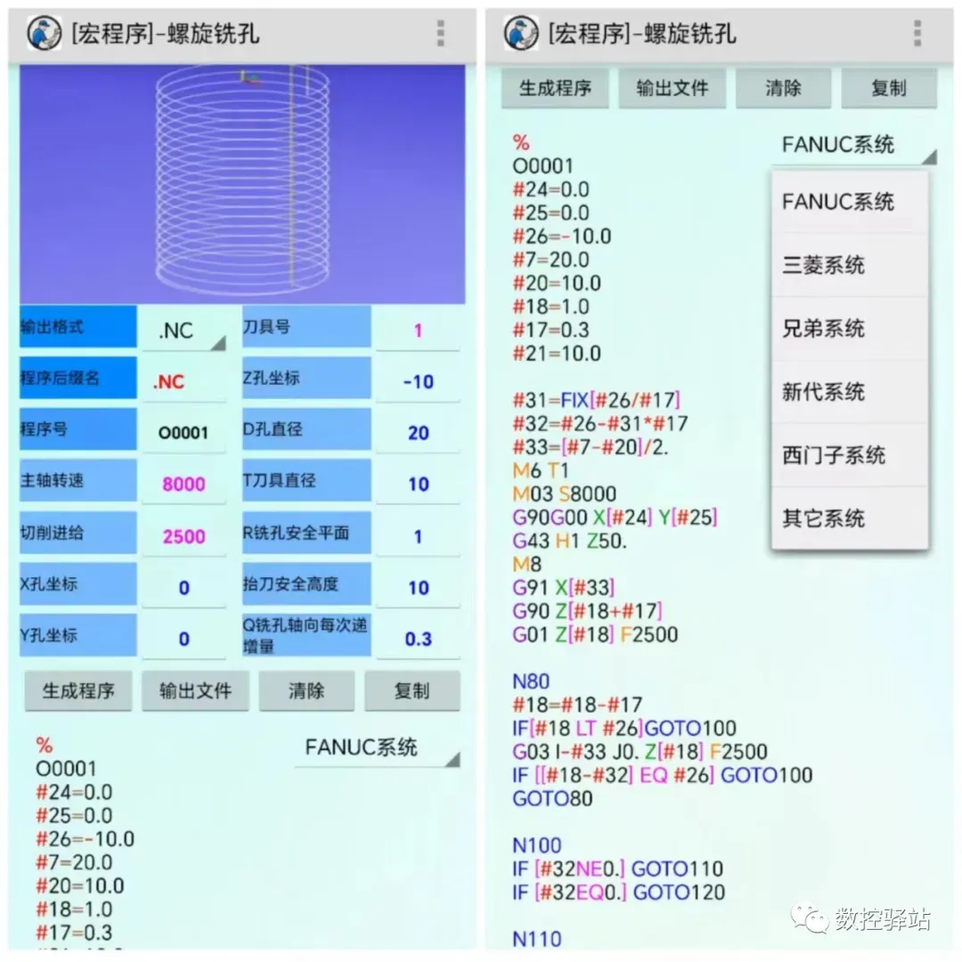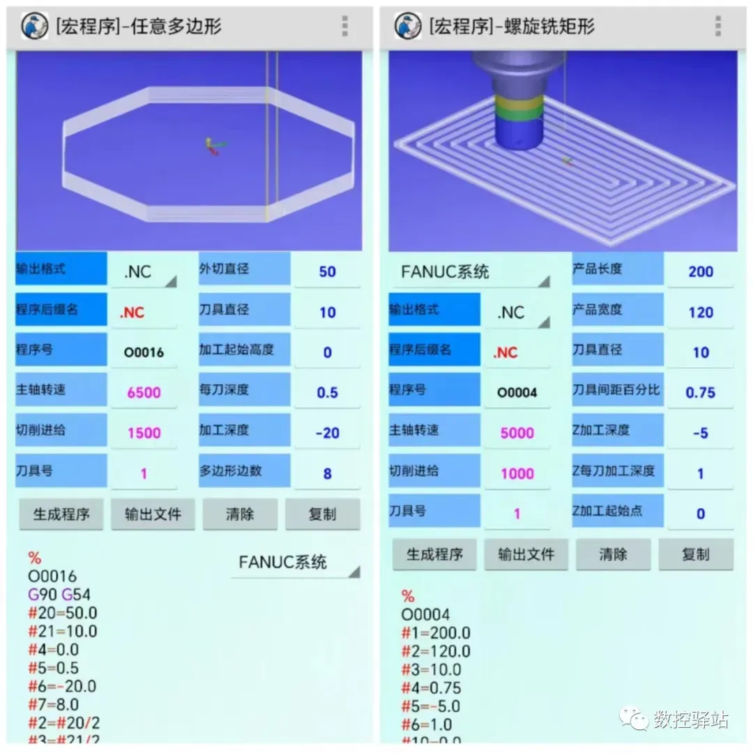 CNC宏程序自动生成目前有80余项常用模板,具有手工编程、系统变量查询、A/B类宏对比、新代格式转换、刻字宏程序、等功能。
