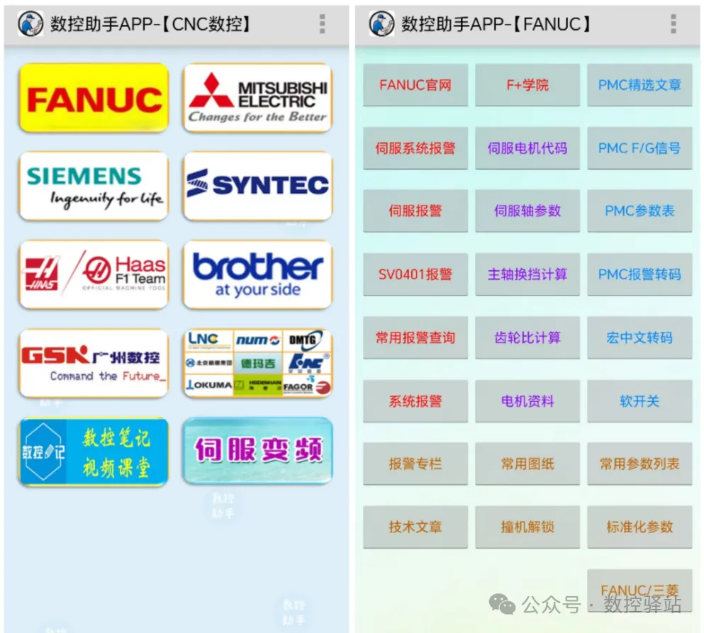 具有查询FANUC齿轮比计算、PMC及宏程序中文报警转码、伺服电机代码、PMC参数及信号地址、主轴换挡计算等;查询兄弟机PLC信号地址、四轴参数、加工模式等;查询三菱PLC开关、PLC常数、R地址信号、加工时间参数;查询 哈斯、新代、西门子、广数 数控系统常见故障报警等;