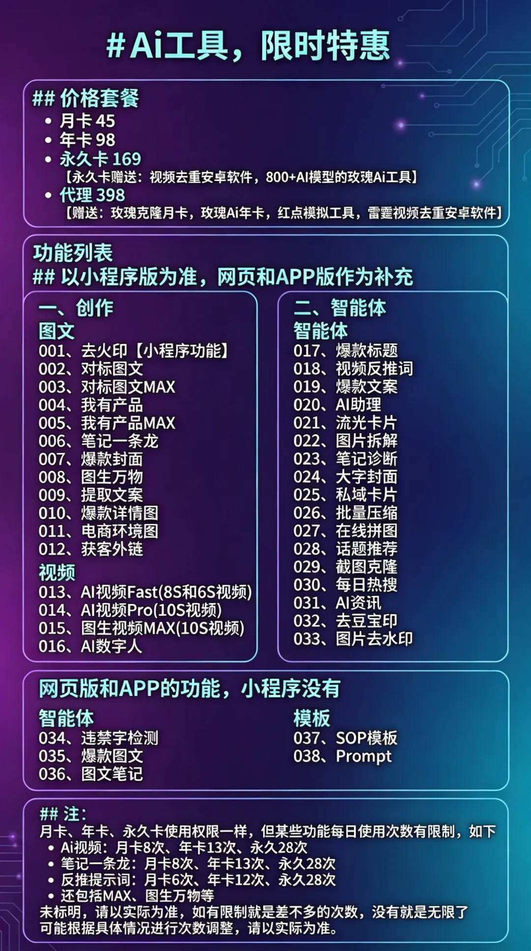 最近这两天AI软件上了新的视频模型,还加了获客外链、电商图等功能。都非常实用。