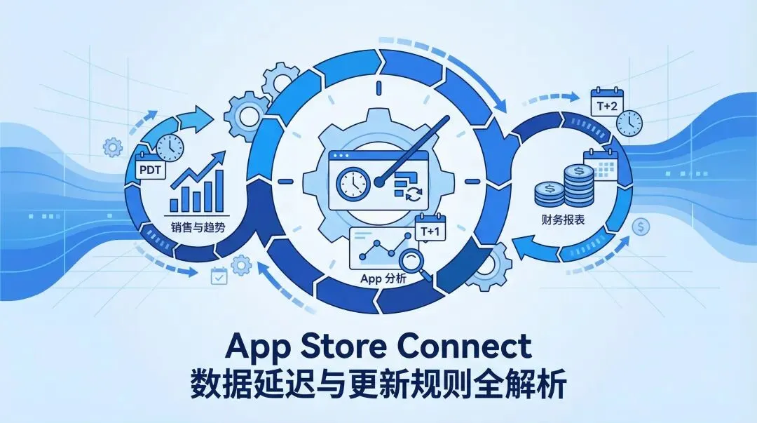 App Store Connect 是 iOS 开发者监控应用表现、分析用户数据、核算营收的核心平台。然而,平台内置的下载量、趋势、收入、用户行为等统计数据并非实时更新,不同模块在数据采集、清洗和聚合逻辑上各有差异,延迟周期也不尽相同。
